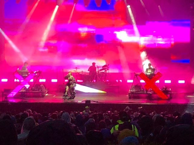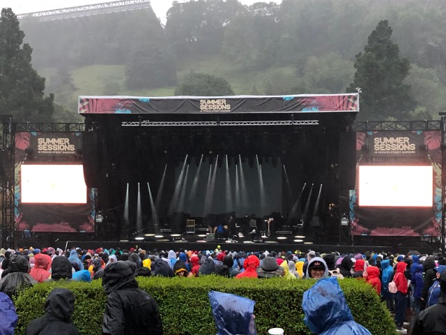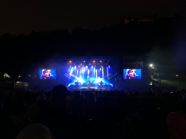 So there we all were, in Princes Gardens, in our rain jackets of variable effectiveness, the castle looming above in the mist, as Chvrches bounced onto the stage at 9pm. And they were great! Lauren Mayberry was as resplendent as ever and the beats pounded through the drizzly air (at least we were spared a deluge). They played much of the set from Latitude plus a few more, including, to my delight, “Tether” from the first album. Along with “Lies”, also from that album, “Tether” remains my favourite Chvrches song, with its wistful start, building up to that 80s disco crescendo. It may have rained all night, but Chvrches brought a bit of sunshine to our lives.