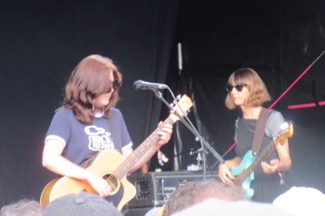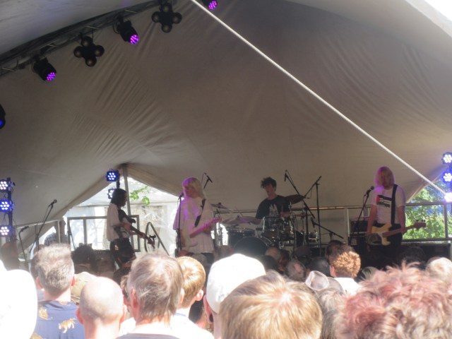 We went over to the Rising Stage for a bit of noise after that, with Wych Elm, a young band from Bristol. They weren’t as loud as one might have expected, given the Rising Stage acoustics, but I liked their energy and sound, which was reminiscent at times of Nirvana, though there were hints of My Blood Valentine too. I’d like to see them in a venue like the Lexington in London, where I think they could make a real impression. Next on the agenda was Yak, back at the Far Out Stage, but on the way I stopped to listen to Foxwarren on the Mountain Stage for a while. They hail from Manitoba in Canada, and play melodious Americana. They didn’t have a lot of stage presence – on that big stage, anyway – but I think they’d be good to listen to at home. Yak gave me another dose of noise, which was in relatively short supply over the weekend (partly through choice – I skipped Pigs x 7 for Julia Jacklin). Main man Oliver Burslem played some dynamic guitar and the bassist laid down an insistent beat. Nothing out of this world, but they have a good live sound with a punk spirit.