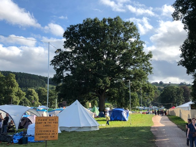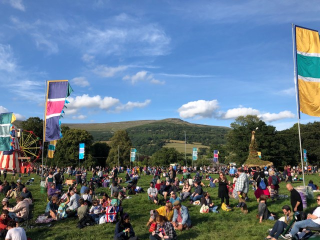 So, after years of hesitation, we took the plunge and headed west down the M4 to South Wales. Jon’s son Louis and his girlfriend Gabrielle came with us. Being west Londoners, the journey was pretty straightforward – it takes ten minutes to get on the motorway. And in Wales, when we headed north into the mountains towards Crickhowell, the nearest town to the festival, the scenery was stunning. The views over the valleys from the hilltop moorlands were especially breathtaking.