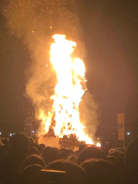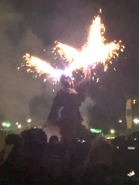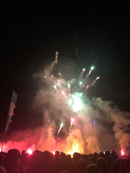 And that was it – not quite. In the grounds outside the Far Out tent there stood the Green Man – a rather spooky-looking oversized scarecrow. It was time to burn it to the ground. Thousands of people assembled for the annual ritual. It was like some kind of pagan festival – it is probably derived from one. The flames shot up and the Green Man crumbled, leaving only its skeleton. And then the fireworks began. A spectacular show. We all love a bonfire and a fireworks display don’t we?