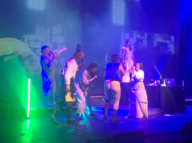 And it was an amazing show, though not quite what I’d expected. I was anticipating a pretty avant-garde display of electronica. Maybe quite discordant and challenging. But it wasn’t really like that. Holly said at one point that she had left Spawn at home; and the music was a lot more organic than I’d expected. She had five singers with her, all dressed in what seemed like mediaeval garb. Holly wasn’t so different herself. And the dominant feel of the music was choral. The voices were put through all sorts of effects and there were some pulsating bass lines that throbbed through the powerful speakers. It was a captivating show, musically and visually, and felt like it would have been perfect echoing through the Gothic spaces of one of the great cathedrals – as long as the bass lines weren’t too much for the ancient foundations!