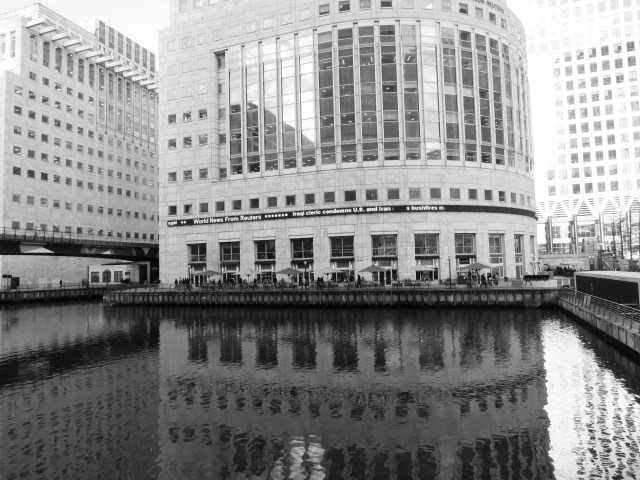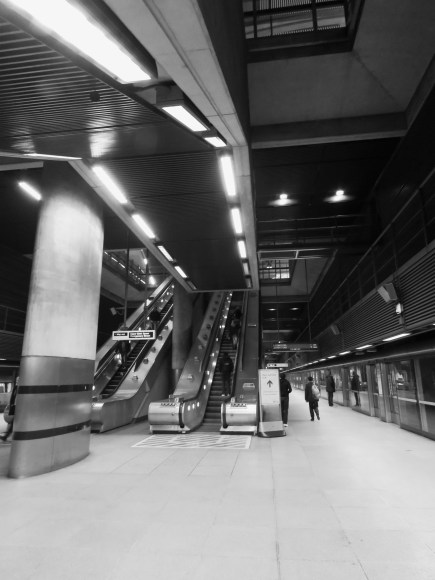 I took the tube to Canary Wharf to catch some of the sights I’d glimpsed just before Christmas on the Docklands Light Railway, from Greenwich to Bank. I do like the DLR – it runs through some really interesting urban scenery, old and new.