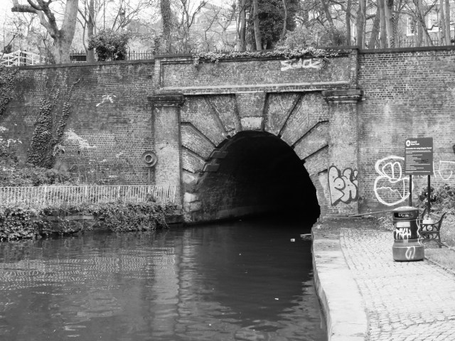 I’d been thinking of walking all the way on the Regent’s canal from Limehouse in the east to Paddington in the west, and spent a bit too much time dawdling in Canary Wharf and Westferry taking photos. So I just walked to Islington in the end. At that point, near Angel, the canal goes into a tunnel for a bit, under Upper Street and a shopping centre – not that the shopping centre would have been there when the tunnel was first constructed. Why a tunnel was deemed necessary, I don’t know. There’s another tunnel near Maida Vale in the west. Maybe they were judged more effective than a load of locks if the land rose, though there’s nothing dramatic in either place.
