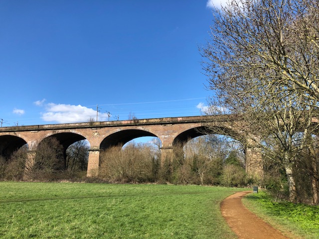 The Wharncliffe Viaduct, from Brent Meadow. Built in 1836-7, designed by Brunel. Still a railway bridge.