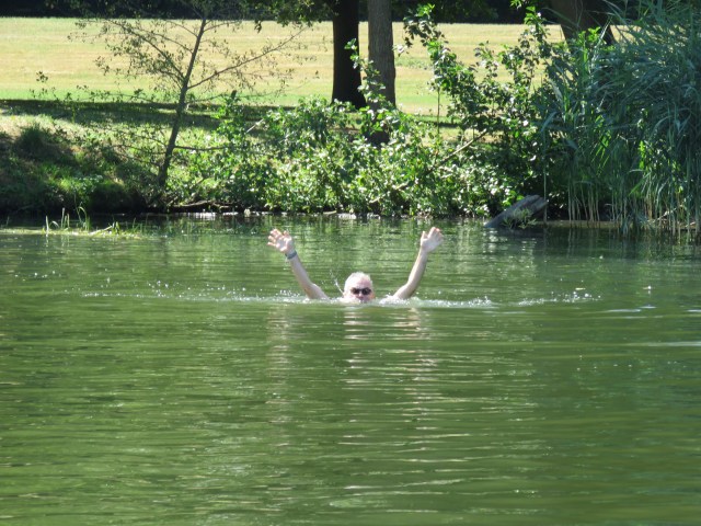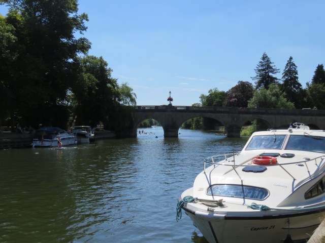 Cholsey is just beyond Wallingford. The town is not on the river, but a bit of a walk inland. We went up to the station to get a taxi back to Dorchester. As we waited we debated why we hadn’t asked the taxi to come down to the river – there was a road. We’d walked another mile or more for no good reason. Blame it on the heat!