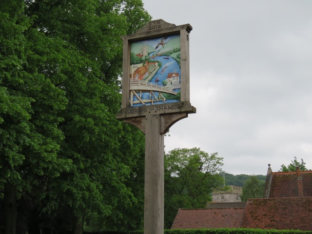 The walk along the river towards Goring was pleasant: meadows and clusters of trees. The village of Goring, twinned with Streatley on the opposite side of the river, dates back to ancient times. The church is from the 13th century. The Icknield Way and Ridgeway cross the Thames at this point. We stopped for lunch at a pub, which I think was the John Barleycorn. I recall having a rather nice pie and a couple of pints, which took me a while to walk off!