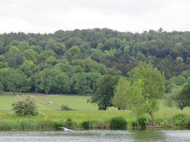 This was another attractive stretch of the river. Just out of Henley we came upon Temple Island, which is the starting point for races in the Regatta. The Temple was originally a fishing lodge for nearby Fawley Court, an historic house, and was designed by architect James Wyatt in 1771. Today it is owned by the Henley Regatta and is both a place for grand functions and a nature reserve. Presumably the nature reserve has the upper hand at the moment.