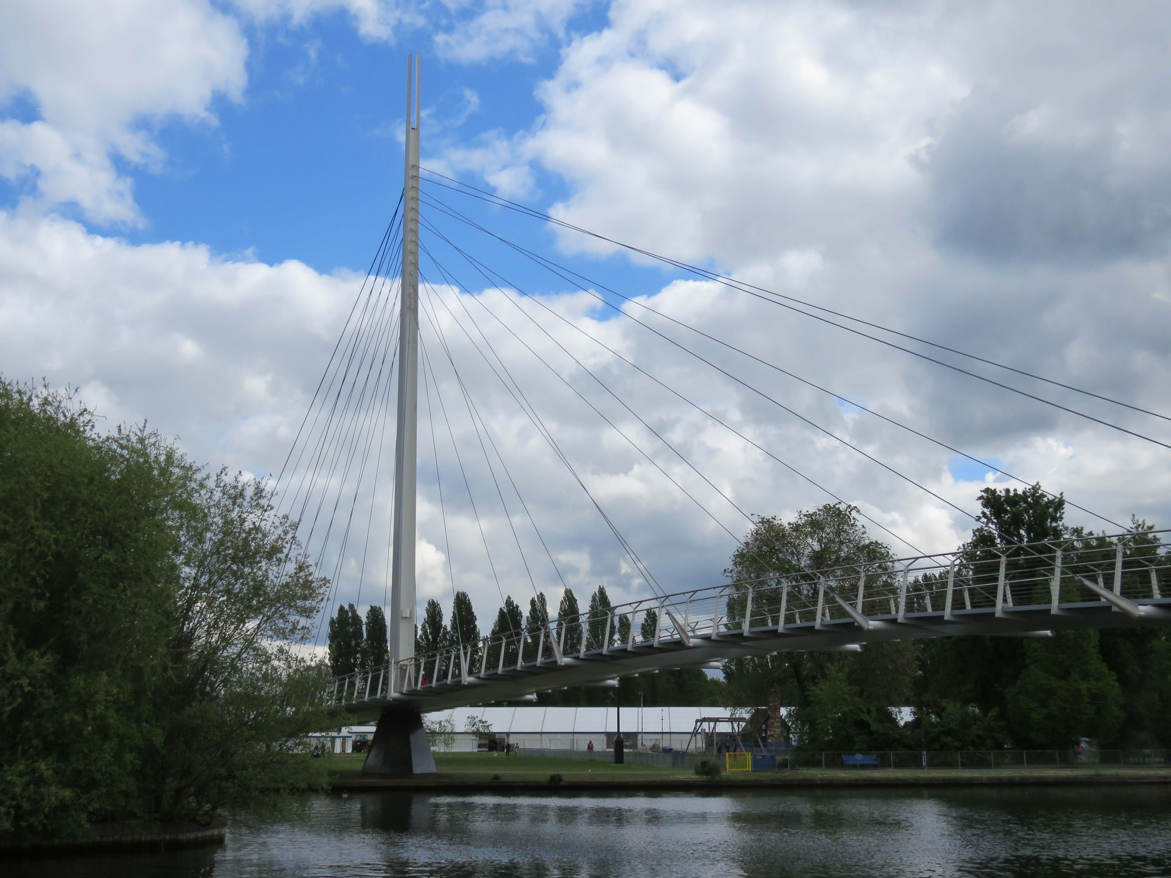 Eleven months later we returned to Tilehurst to walk the next stretch of the river, to Henley. This was one of the most picturesque of the journey – once we had got past Reading! In fairness, once we had left Tilehurst, where we were walking along a fairly narrow path enclosed by a high railway embankment, the Thames Side promenade was quite pleasant. Caversham was opposite, recently connected by a footbridge called the Christchurch Bridge, after the meadows on the Caversham side. It opened in 2016. There was a competition to name it in which one of the popular choices was De Montfort bridge. That’s a name I tend to associate with Leicester, but nearby Fry Island is known for being the site of a duel in 1163 between Robert de Montfort and King Henry II’s standard bearer, Henry of Essex. The latter was accused by the former of dropping the royal standard in a battle with the Welsh. A duel ensued, in which De Montfort triumphed. Henry of Essex was taken to Reading Abbey where he recovered from his wounds. Thereafter he became a monk!