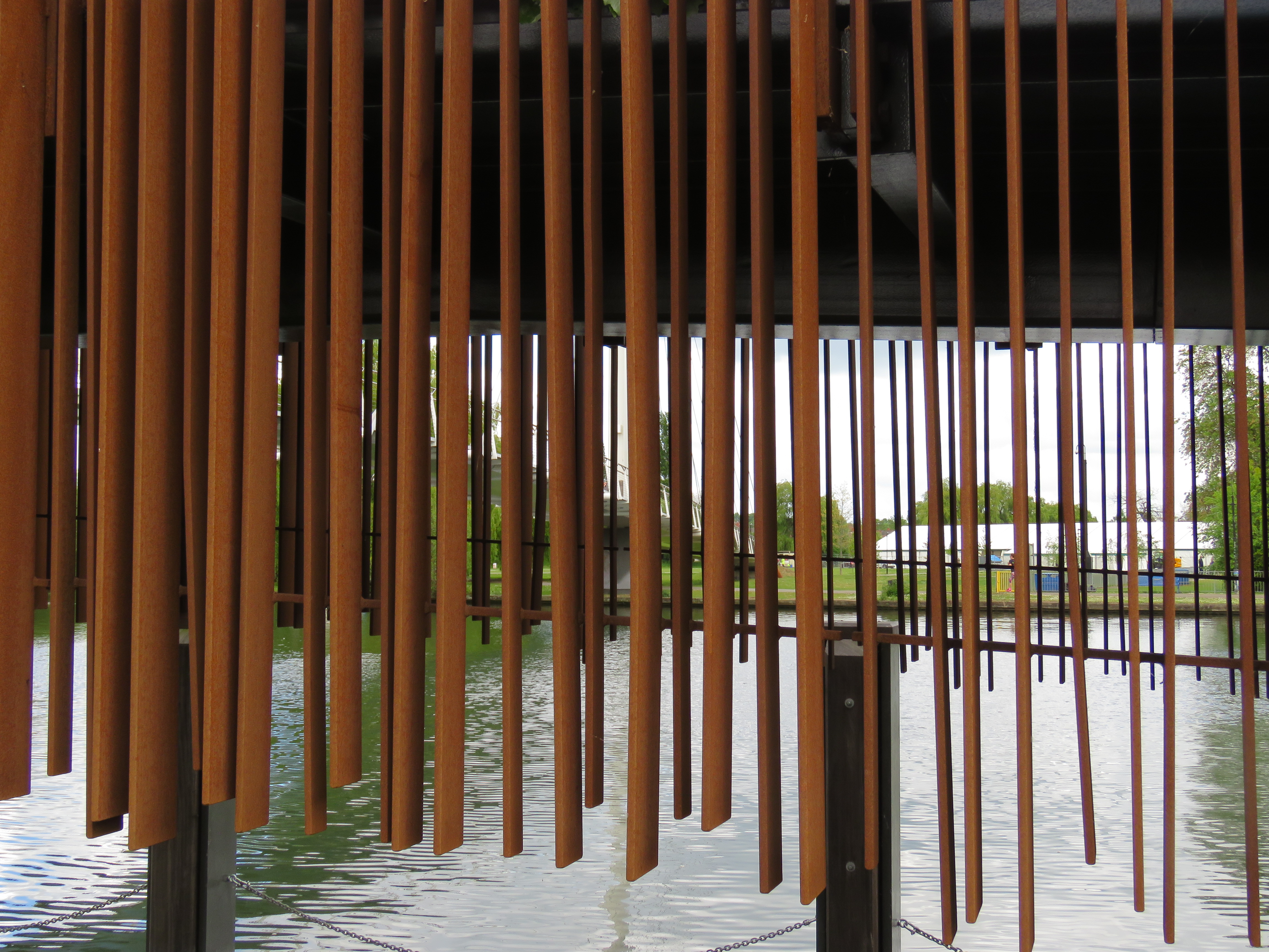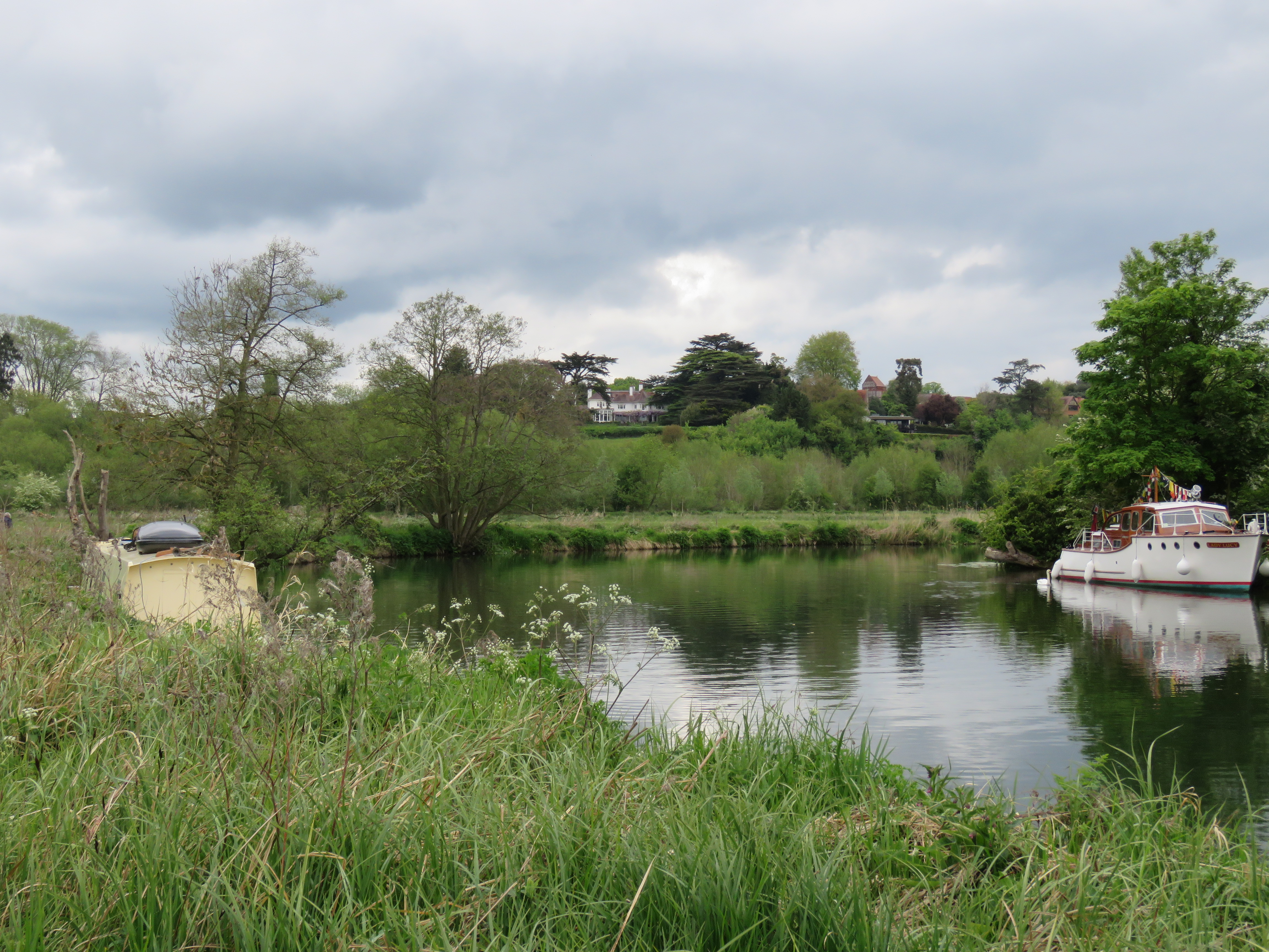 Soon after the Christchurch Bridge we came to the point where the River Kennet joins the Thames. That brings back memories for me and Jon. In the summer of 2013, in blazing heat, we cycled from Reading to Bath along the river and the Kennet-Avon canal, stopping overnight in Hungerford and then Devizes. It was a great adventure, quite arduous in places, but with some wonderful scenery and some interesting encounters. I wrote a piece about it at the time, which still gets quite a few hits to this day. See the link above.