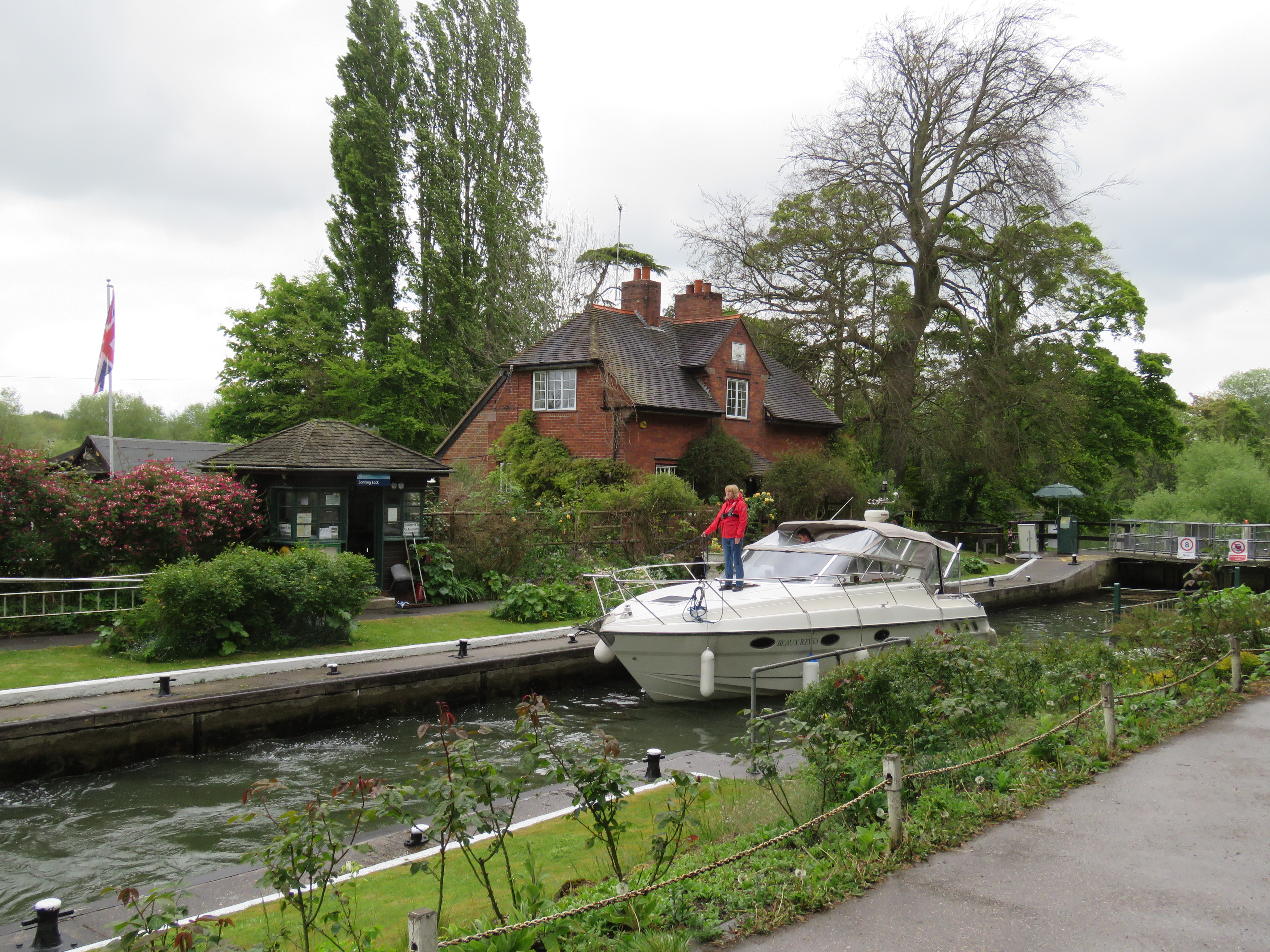 Close to Henley we came upon Marsh Lock and weir. It is an impressive construction, and the surrounding houses are equally striking.