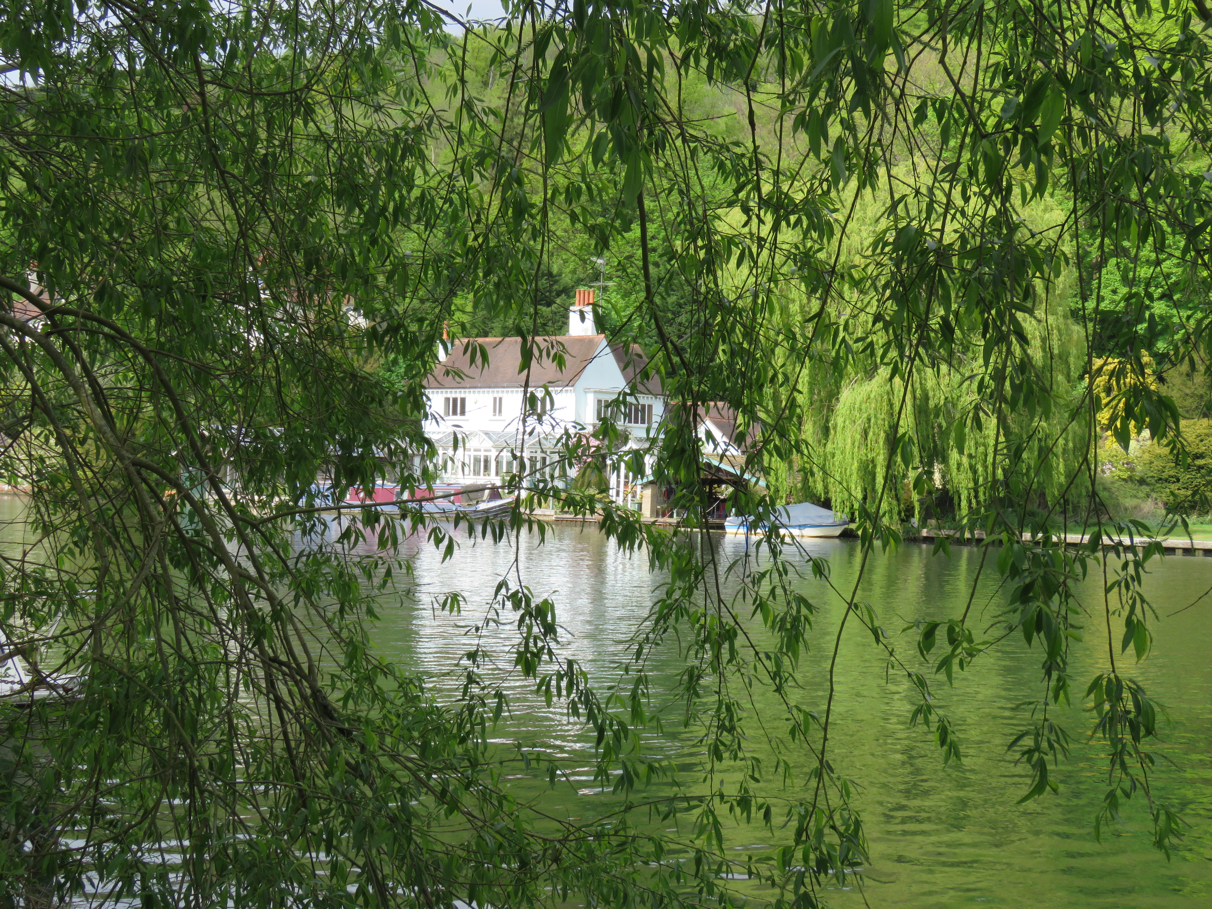 Further downstream there was a brief diversion from the river bank, slightly uphill. From that vantage point we could see the distinctive white buildings that were originally part of Medmenham Abbey, a Cistercian abbey founded in 1201 under the ownership of Woburn Abbey. It was closed in Henry VIII’s purges, but not destroyed. It took on a number of lives after that, most notoriously when it became the venue for the Hellfire Club in the mid 18th century, a group of establishment figures who met to indulge in activities frowned upon by polite society, including “obscene parodies of religious rites.” Today the place is in more discreet private ownership. I didn’t know any of this at the time – it looked to me like it was probably a conference centre. This part of the world is conference centre land – easily reached from London, but a world apart.