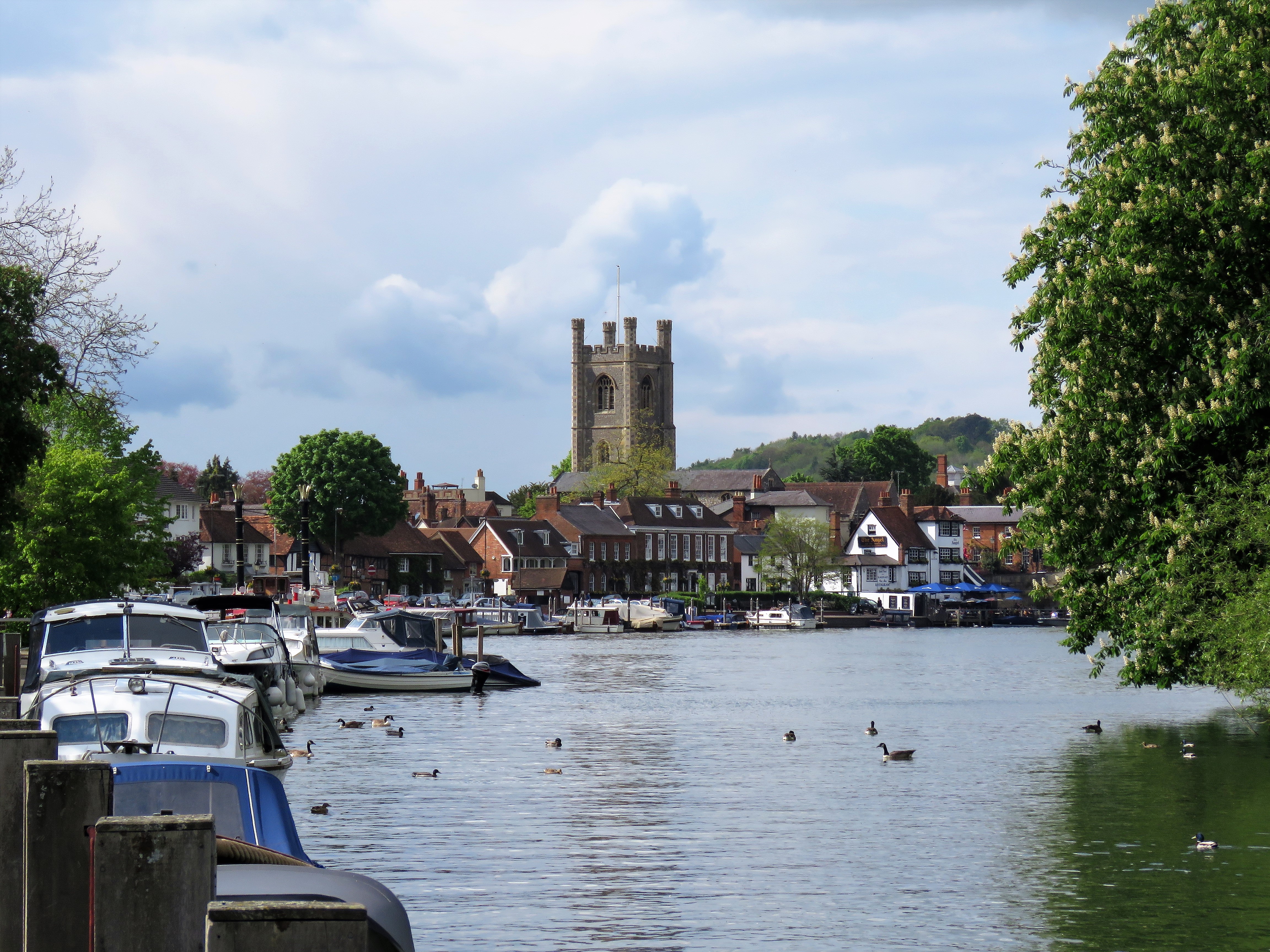 Marlow means low and marshy ground. It has suffered from floods – the worst in recent times was in 2014. The approach from upstream is quite similar to that of Henley – the bridge and the church tower standing out. The bridge is relatively recent by local standards – opened in 1832. It was wooden before that. The architect, William Tierney Clark, modelled it on Hammersmith Bridge, a place dear to my heart, as a later episode will expound upon! He went on to design the bridge that connects Buda and Pest in Hungary. Now, that is something special.