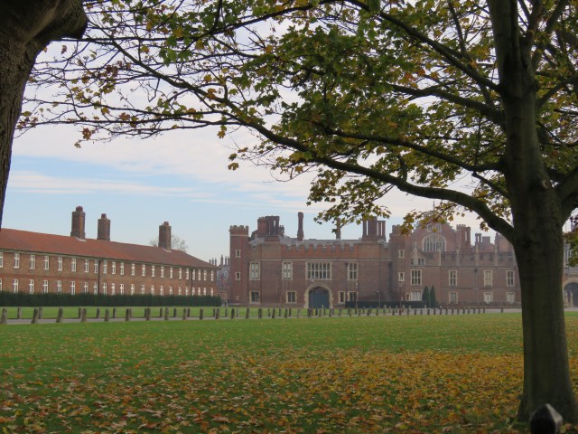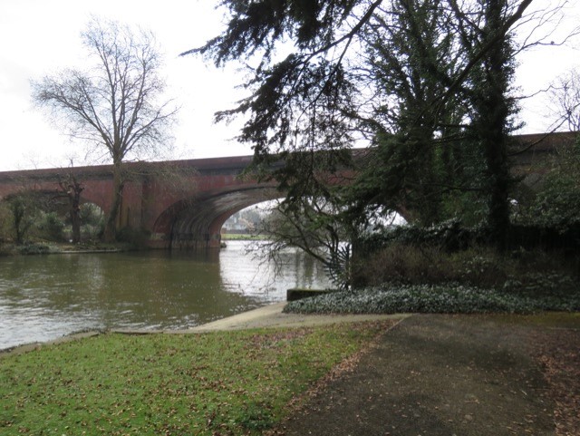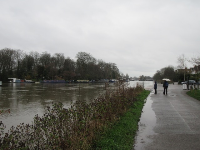 Quite often, before we finished our journey with three walks between Inglesham and Farmoor (see part two of this journey) we reminded each other, we haven’t done Chertsey to Hampton Court yet. I can’t say that I recall being excited by the prospect, but it had to be done. It was a good bit of exercise, and the Thames always has its compensations. It was another dull grey day when we completed this stretch. There had been a lot of rain, and there was a bit of flooding. Peter Ackroyd says that Chertsey has the last of the Thames’ “water meadows”. So it was a fairly unremarkable walk, but the destination was splendid, even if it didn’t stand out on the day.