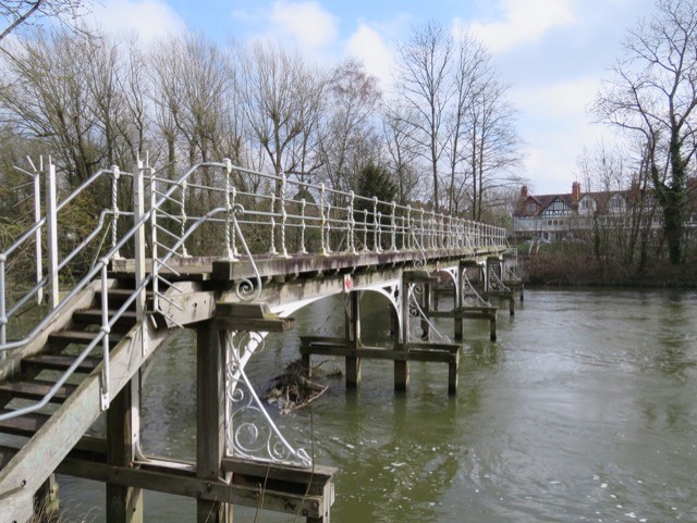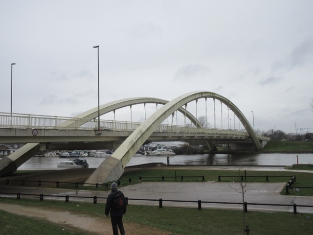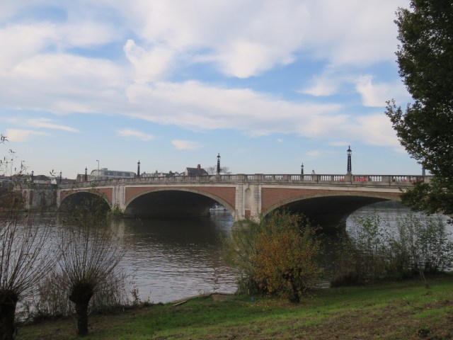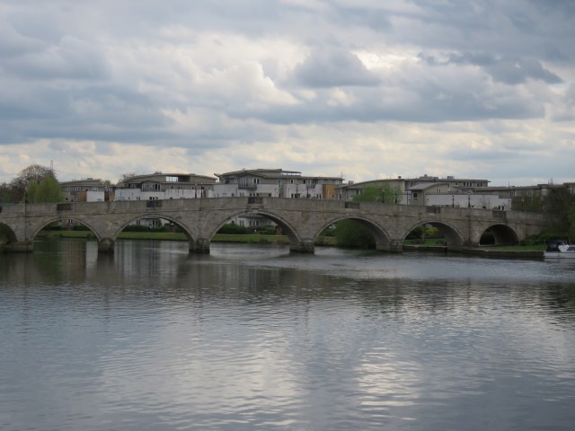 We ended the walk at Chertsey. It was quite a long walk from the bridge to the station. We were blissfully unaware that Chertsey was the site of the Benedictine abbey of St Peter, from the 7th century AD – or I was, anyway. Ackroyd writes that it was “ravaged” by the Danes and rebuilt by King Edgar in 964. It, and Chertsey, thrived until Henry VIII’s reformation did its worst. Some of the stone was taken down to Hampton Court and used for the palace there. The present bridge dates from 1785. The first was constructed in 1410 and was maintained by the abbey.