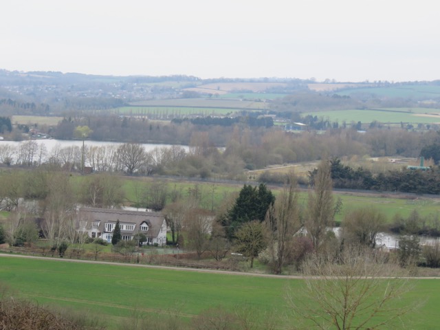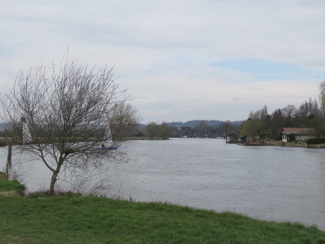 At Cookham the Thames path veers off the river for a while, and ascends a hill. We approached from the opposite direction. I remember the path up that hill being the steepest we encountered on our Thames journey. There are some lovely views towards the Thames – and Lulle Brook in between – from the top.