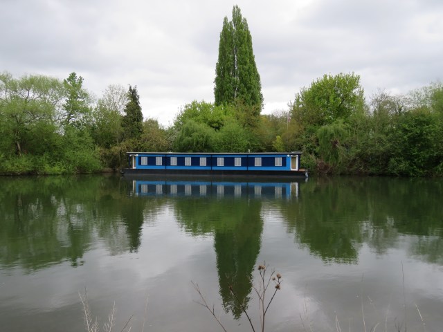 This is another stretch that we walked upstream. It rained for almost the entirety of the walk, which was about 7 miles. We had all the requisite rain gear and it held out pretty well. But we were drenched on the outside. The abiding memory is going into a DIY store in Maidenhead to see if there was a café for a warm cup of tea, just after coming off the river. We stood inside the building with the water dripping off us, forming pools on the concrete floor. Needless to say, there wasn’t a café – not there or anywhere else on the way back to the station. We admitted defeat and took a train back to Ealing, damp and thirsty.