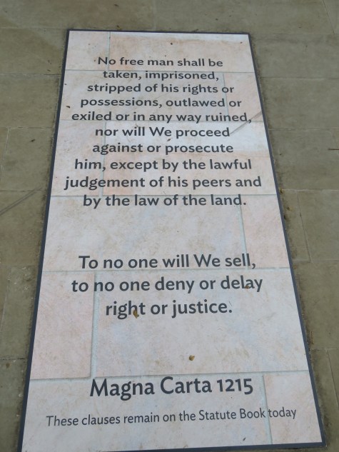 Just past Old Windsor we came to the place I was most looking forward to seeing on this walk: Runnymede. Famous as the site where King John, in 1215, met his barons and signed the Magna Carta. While a lot of the text is devoted to the detailed concerns of the day, there are also some timeless expressions of individual rights and justice which remain on our statute book today. Our current government would do well to remember them when they talk about passing legislation which would allow them to ignore the rule of law, international or otherwise. The site commemorating the Magna Carta is simple but inspiring. Nearby there is a memorial to John F Kennedy. Both remind us that there is better way of governing than that we have experienced in the UK and the USA over the past four years. Fingers crossed that political events in both countries over the past couple of weeks do portend some light at the end of the tunnel.