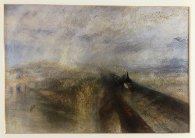 Today, the thing that interests me about Maidenhead is that railway bridge. This was built by Brunel and was completed in 1839. It heralded the age of steam-powered trains. It was a daring piece of architecture – even today it has the longest and widest flat brick arches in the world. Sceptics predicted it would collapse as soon as trains ran over it. One person who was enthralled by this was the artist JMW Turner. One of his great later paintings, from 1844, is Rain, Steam and Speed, which depicts a train travelling over Maidenhead railway bridge. At this time, many of his works had become more abstract in the way they dealt with colour, light, shade and objects. They were hugely ahead of their time, and many contemporaries hated them. Rain, Steam and Speed is a perfect example. The painting is part of the National Gallery collection, but has been lent to Tate Britain for its exhibition Turner’s Modern World. This opened just before we went back into lockdown. I managed to see it a couple of days before everything closed down again. It’s a brilliant exhibition. If you are in London or nearby, do try and catch it when we re-emerge into the light.