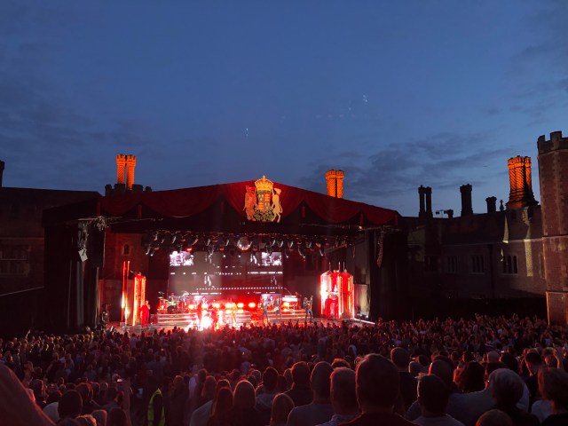 Hampton Court Palace is, of course, the focal point of the area. It is a magnificent building, with some lovely gardens, all beautifully maintained. It was the home of the ogre Henry VIII, and I have no wish to dwell on that. Instead, I want to celebrate one of its present uses, at least before the pandemic, which is to host concerts in the summer. They take place in one of the large quads, and it is a wonderful setting – as long as it is not raining! We have had some great moments there over the years: Roxy Music, Bryan Ferry solo (twice), Lisa Stansfield, Ringo Starr, and best of all… Kylie! That was in June 2019, and it was an amazing evening. There are a few photos below, but for a longer account of a fantastic evening, have a read of the blog I wrote about it at the time.