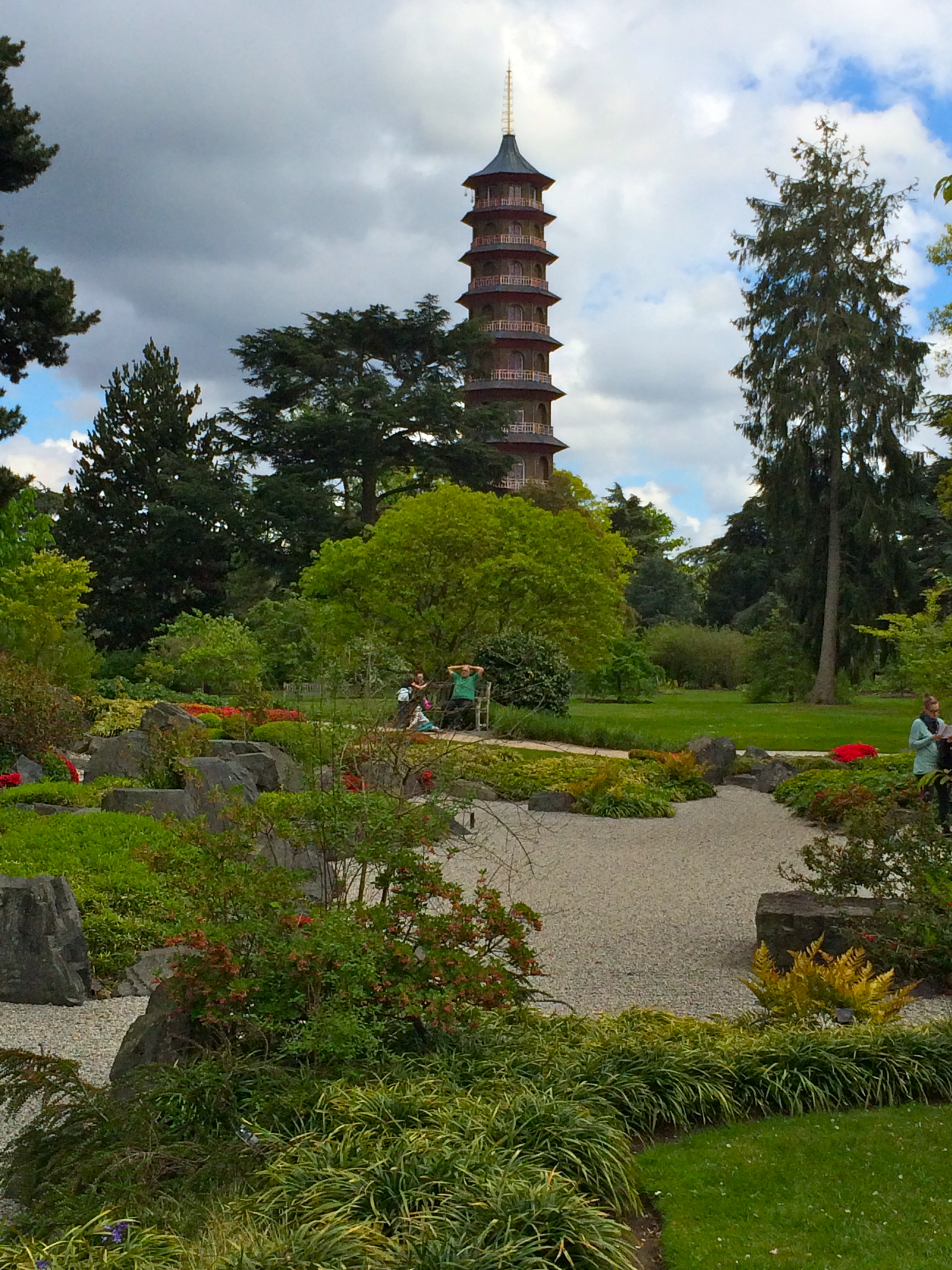 Hopping back over the river, but via Kew Bridge rather than that imagined footbridge, let’s linger in Kew Gardens before ending at the bridge itself. And Kew Gardens is a very nice place to linger. The Royal Botanic Gardens, to give them their formal title, were founded by Princess Augusta in 1759. Born in Gotha, Germany, she became Princess of Wales when she married George II’s son Frederick. She developed the exotic gardens which had been created by Henry, Lord Capell of Tewkesbury. The proximity to Richmond Palace meant that many noblemen had settled in Kew in Tudor times.