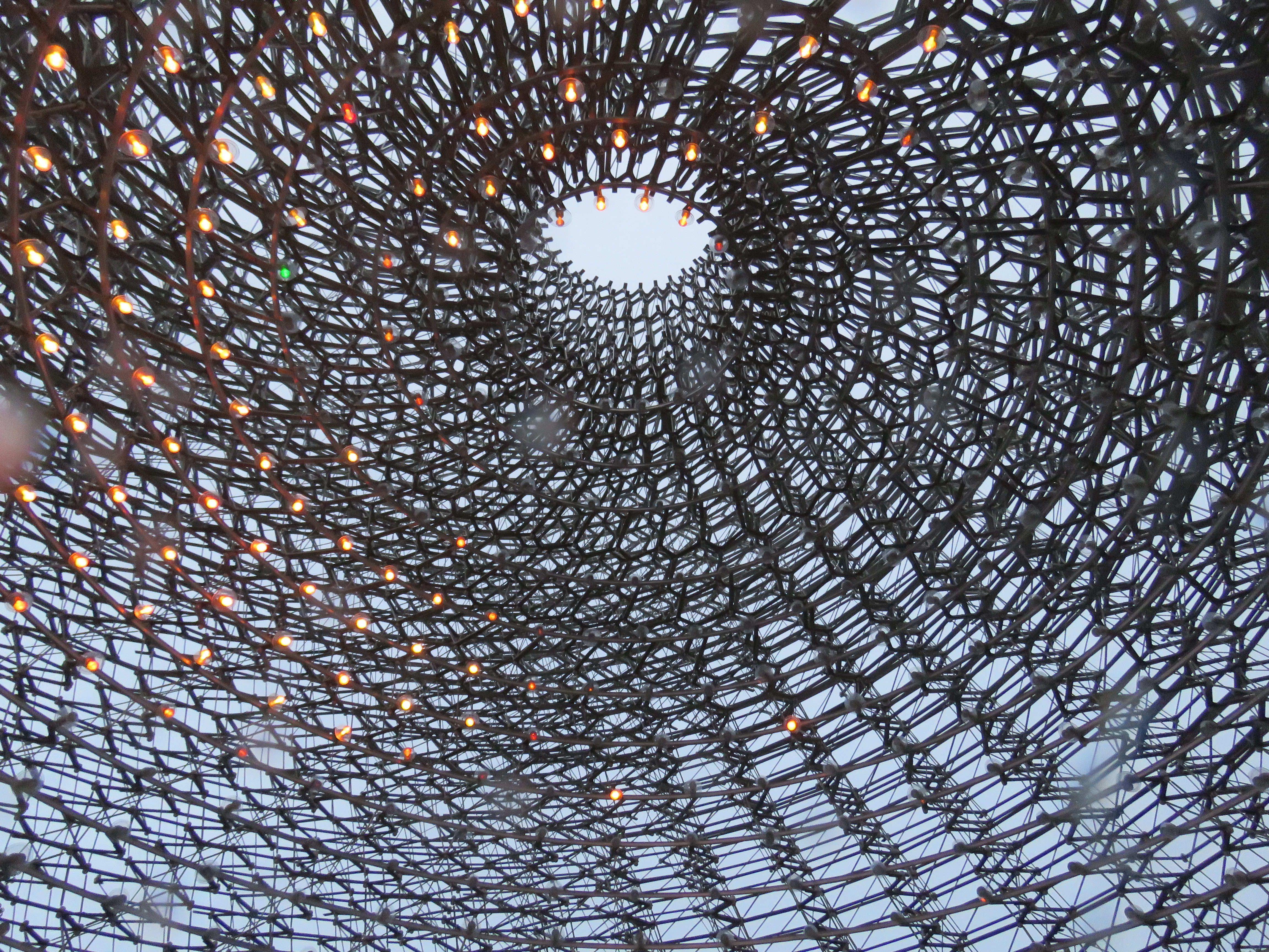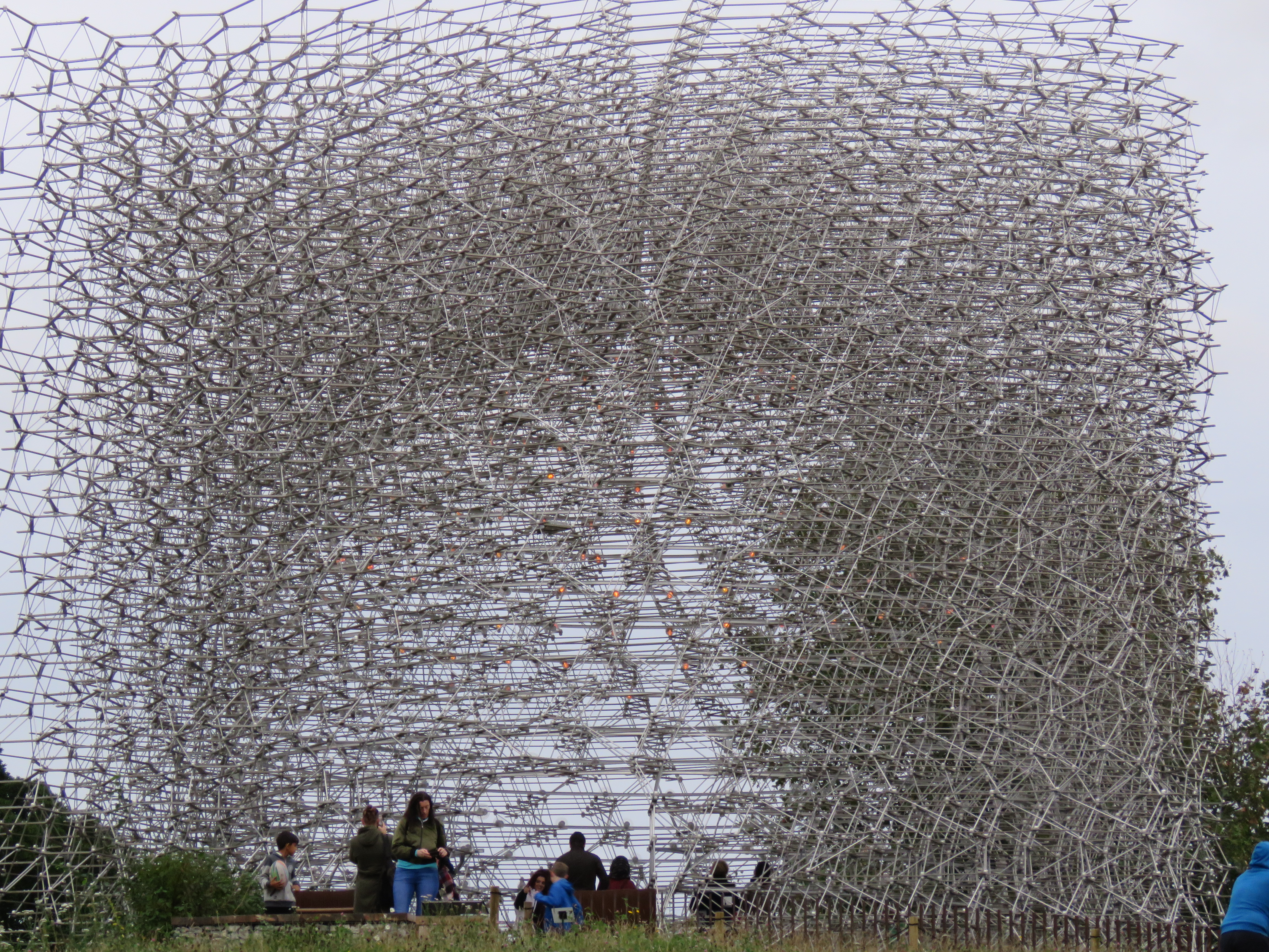 The Hive was created in 2015 for the UK Pavilion at the Milan Expo, but found its way to Kew in 2016. It hums with the sound of bees from a nearby real hive, while lights inside glow to the vibrations of the bees – in the key of C!