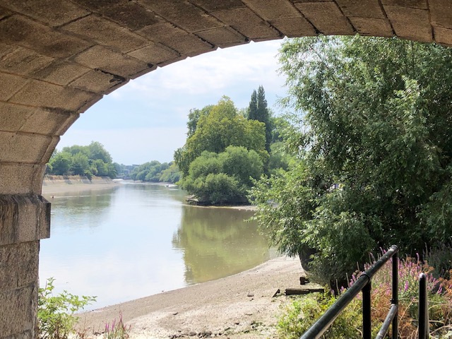 The first three photos are from February 2019, at low tide. There’s another ait near Kew Bridge – after which the pub One Over the Ait is named – and the channel on the Brentford side dries up almost completely.