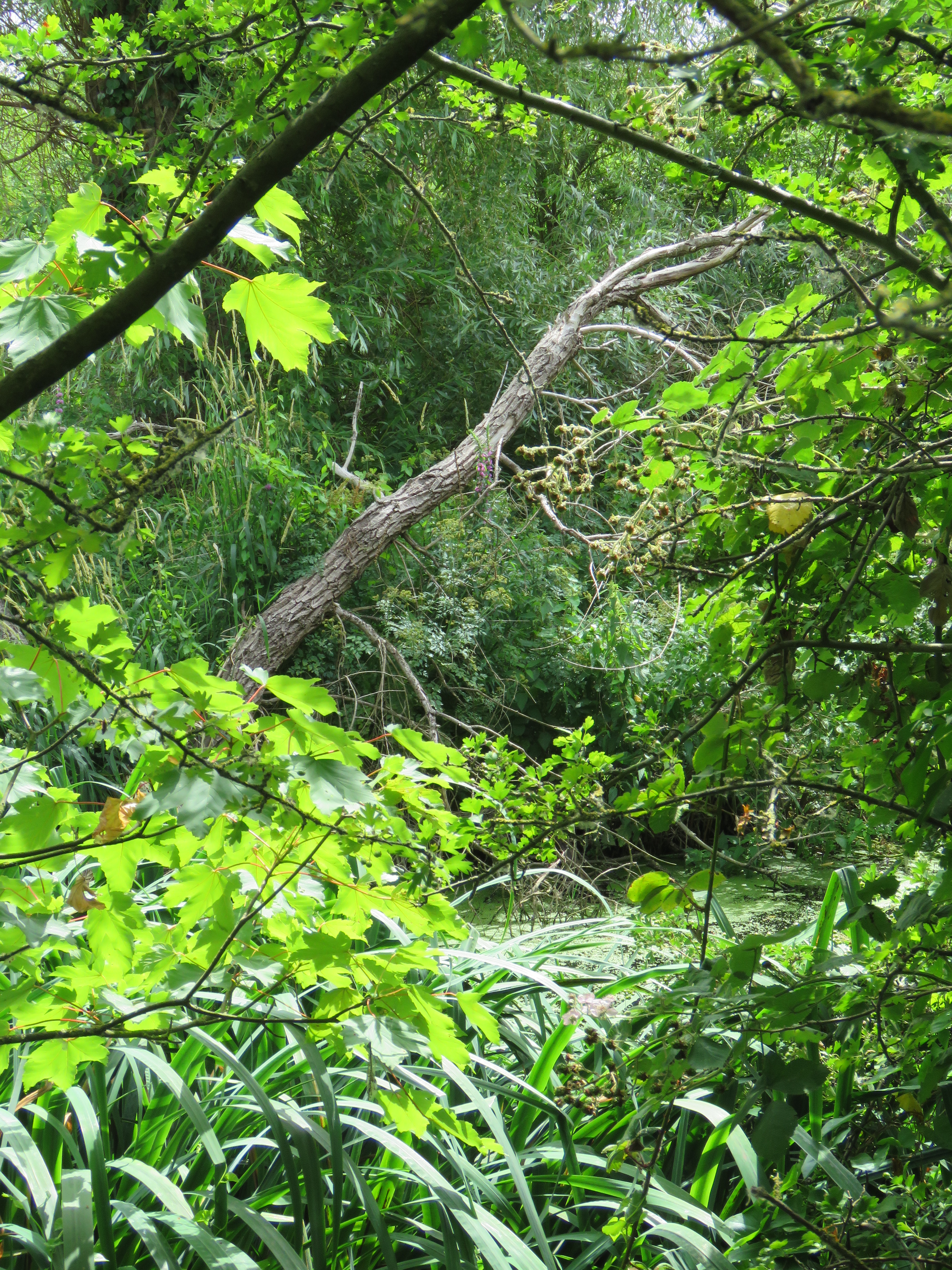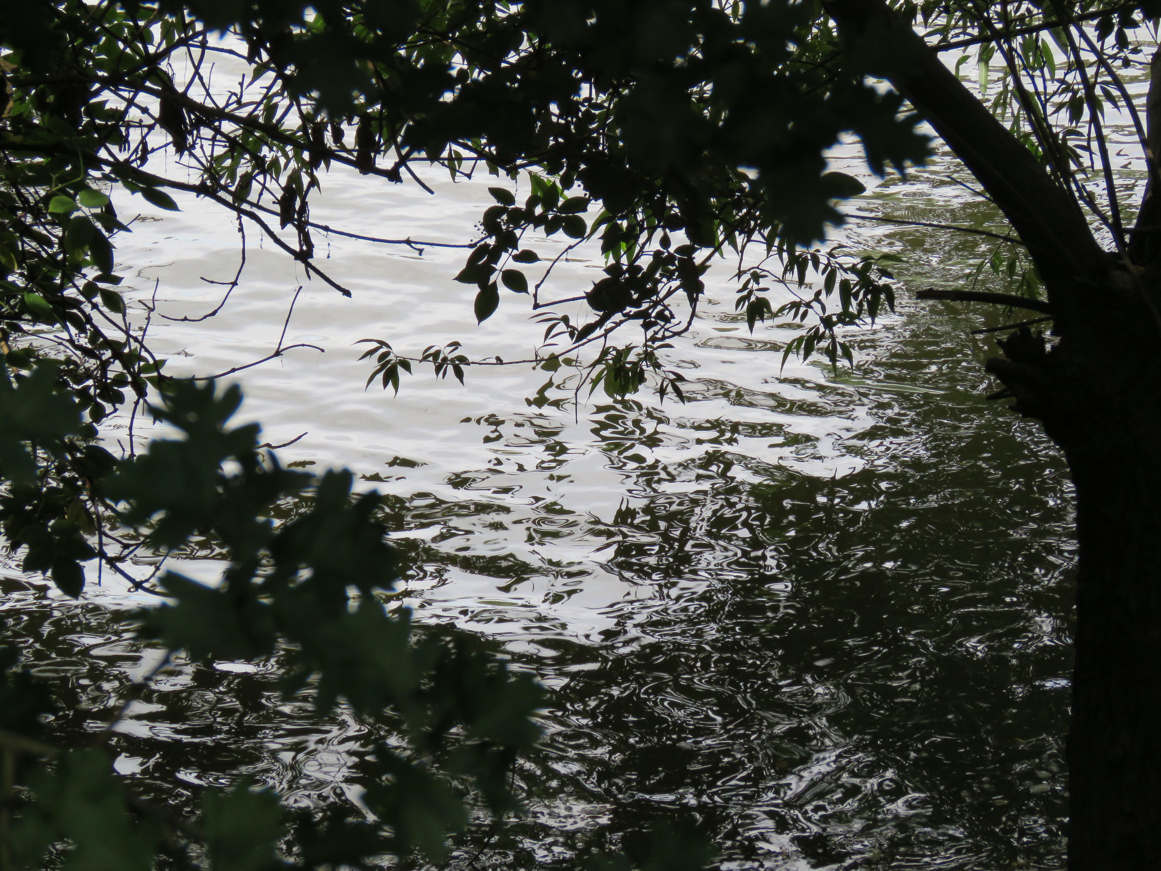 I love the riot of plant life along this stretch of the river. Between the Old Deer Park and then Kew Gardens there runs a channel of water, with all sorts of trees and undergrowth thriving in it. It is endlessly fascinating, almost jungle-like. And on the other side of the towpath, there is a lovely array of flowers on the river banks – and below the banks, revealed at low tide, a tangle of tree roots in thick mud. Not quite swamp, but the next best thing. And if you zoom your lens into the rippling water around all of this, you get the most beautiful patterns. Here are some photos to give you a sense of what I mean.