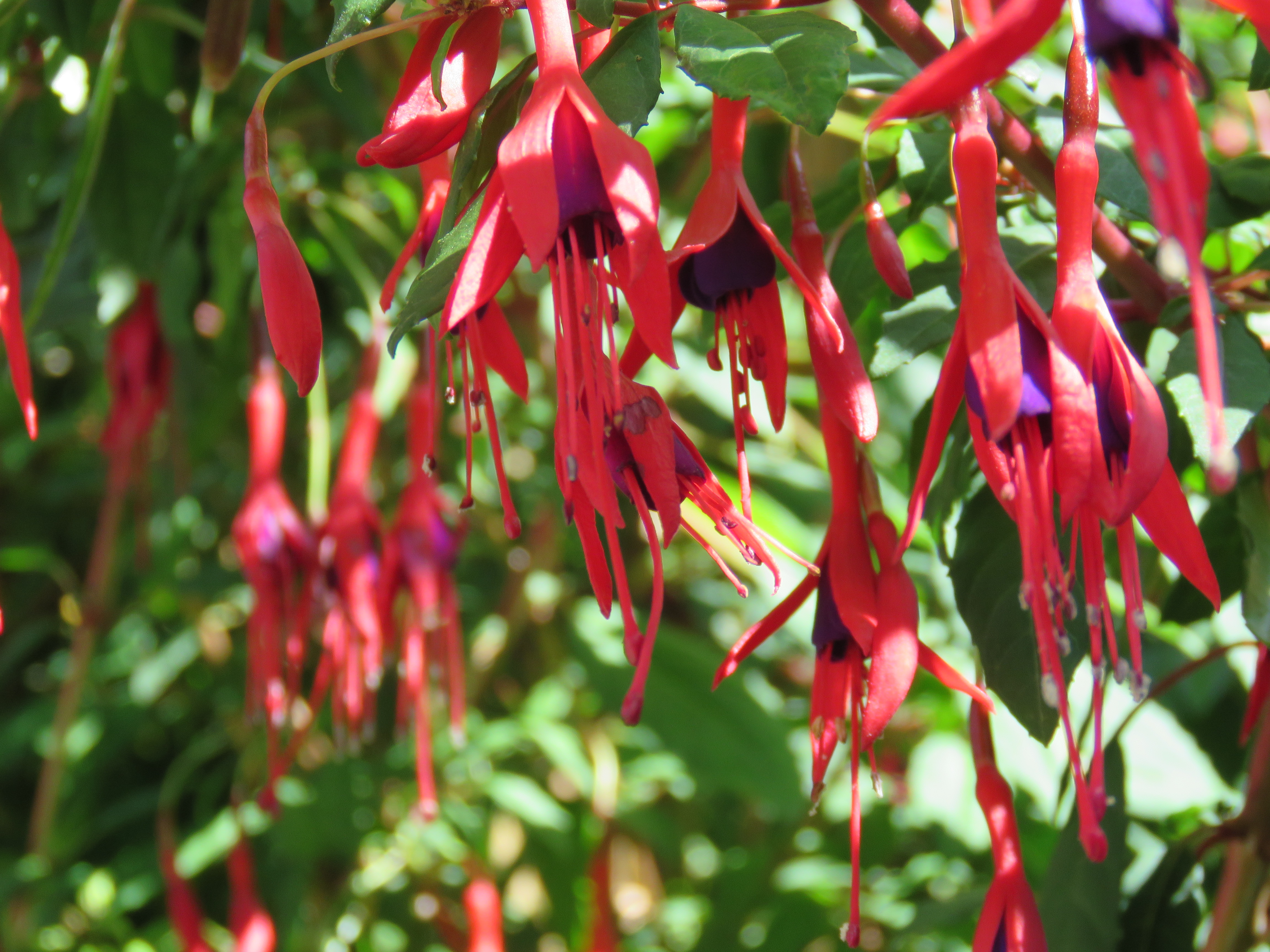If you take the steps down from Kew Bridge on the Brentford side, there’s a lovely spot to gaze downstream. You can then take a secluded path, passing by the One over the Ait, where in summer the fuschias bloom. This caught me by surprise when I first encountered them last summer. The first three shots in this batch are from July; the last, in glaring sunlight, was taken in August.