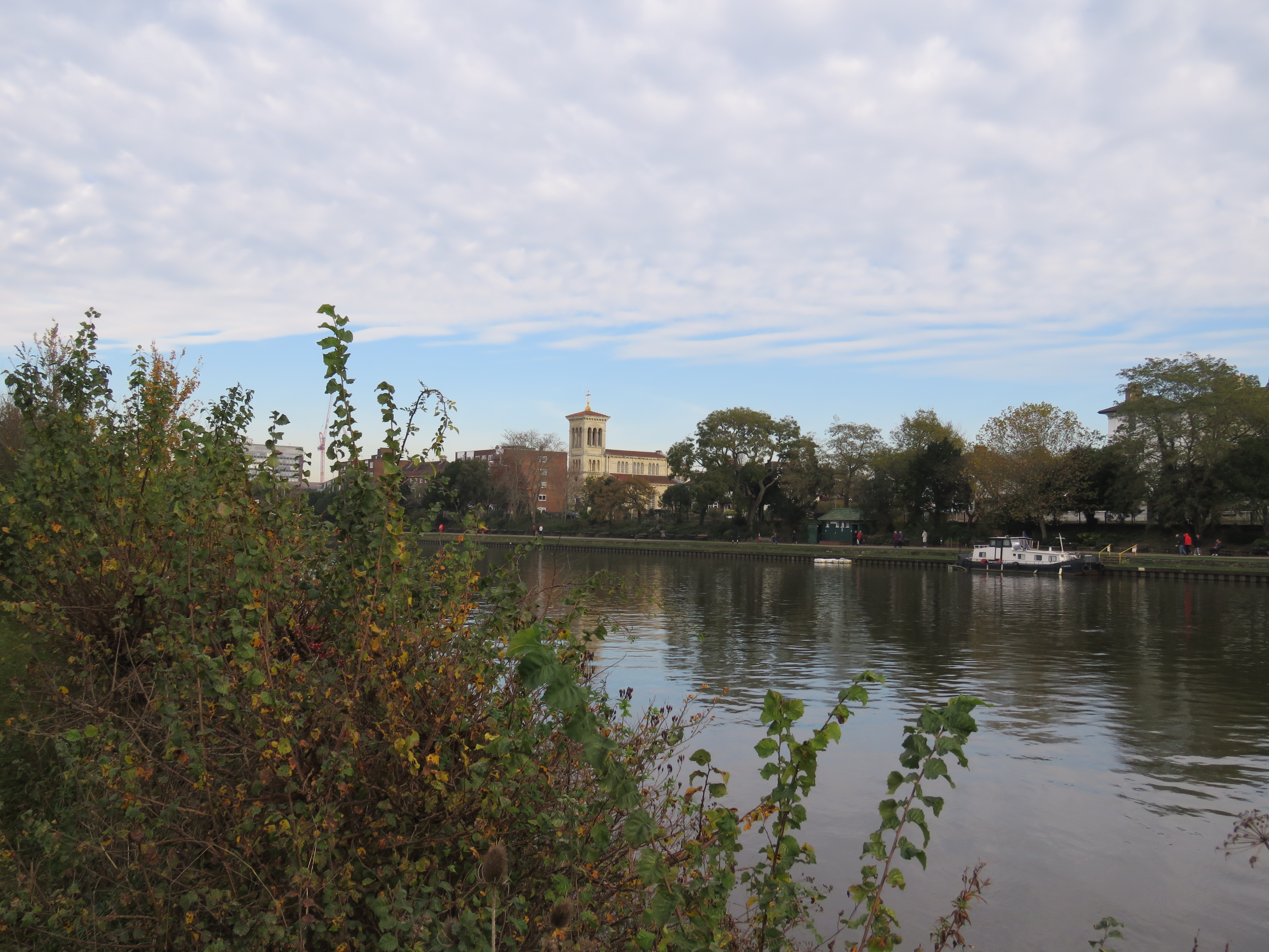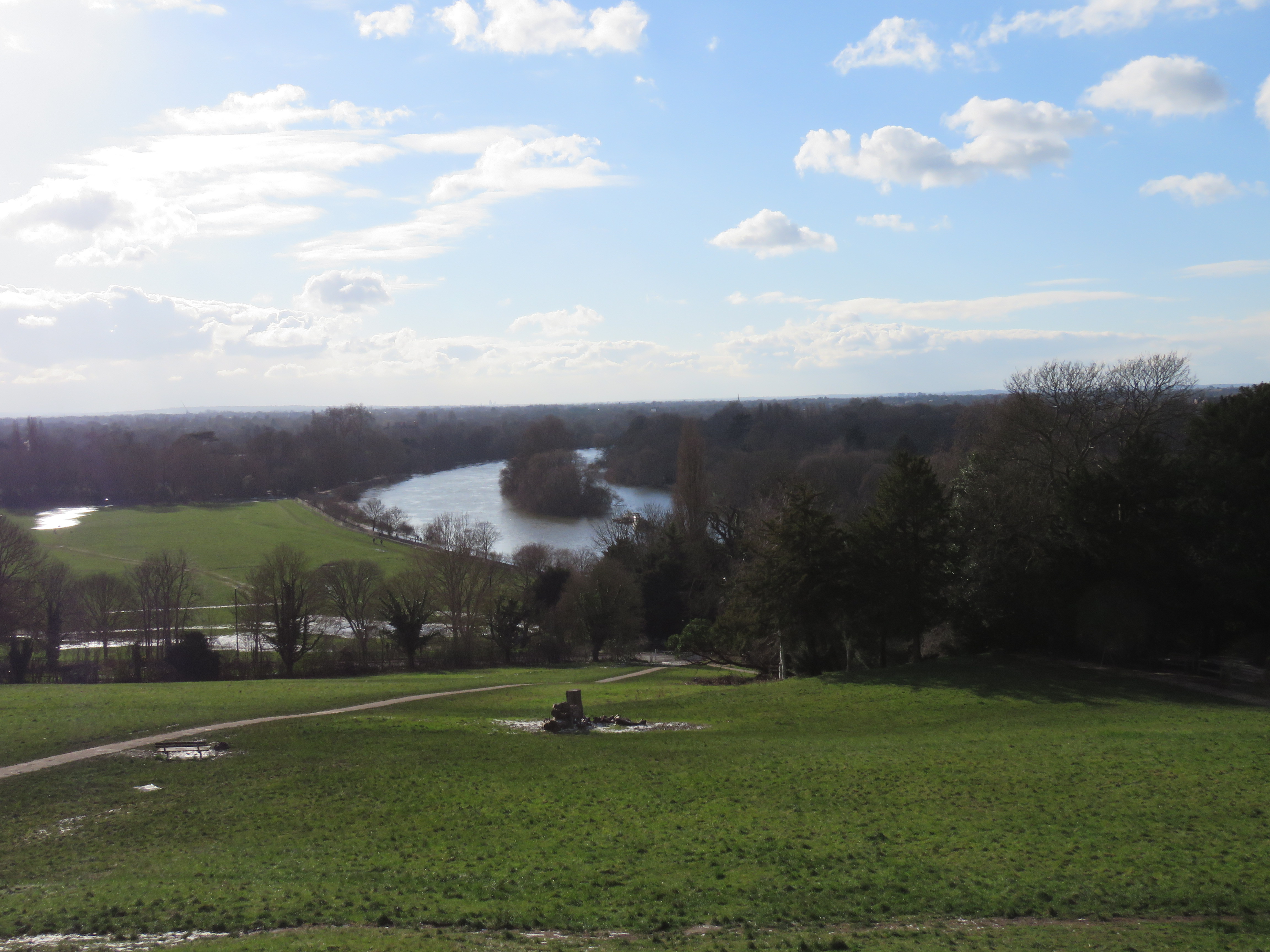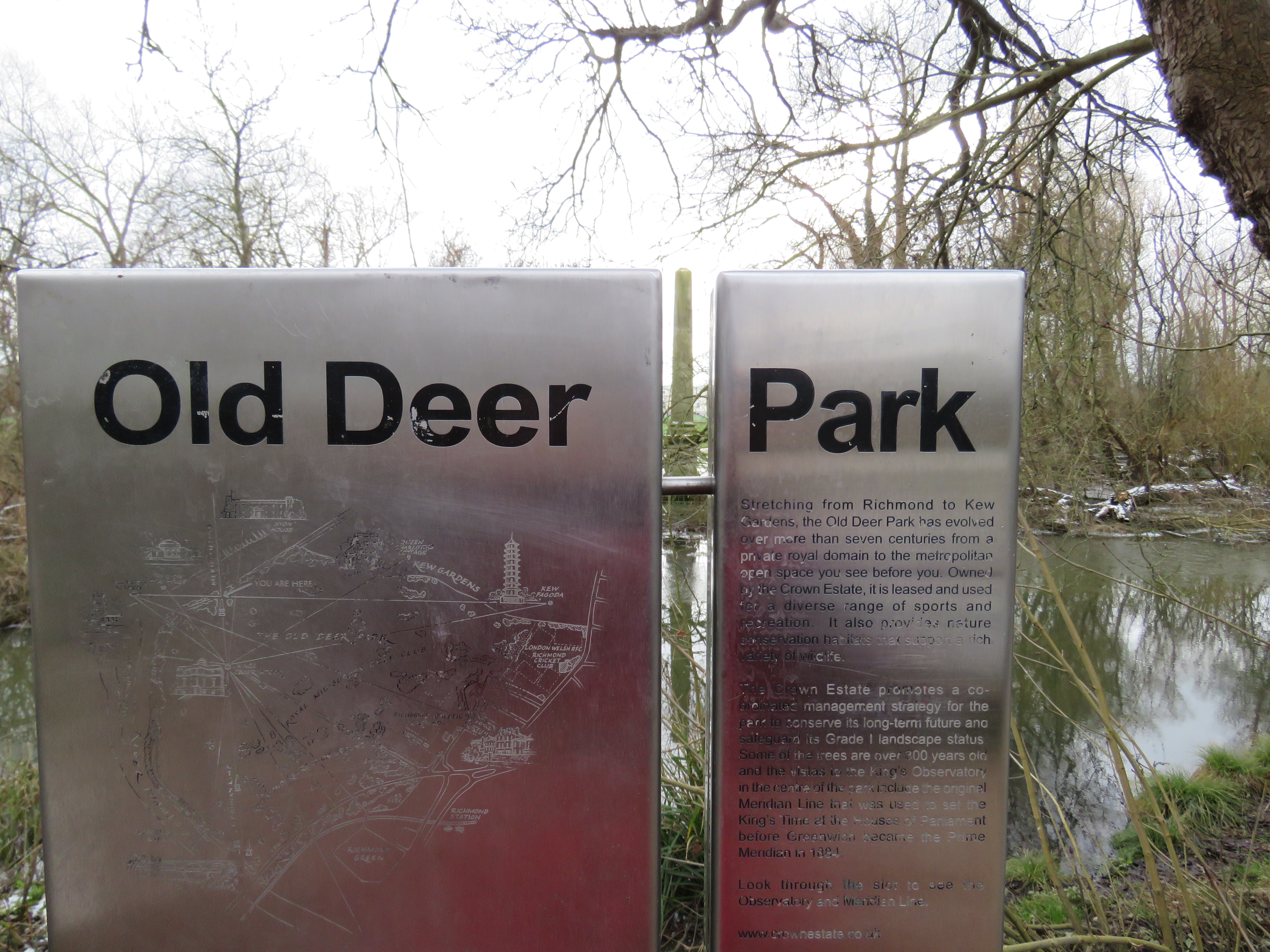 Before I describe some of that walk home, I’ll stay on the Surrey side, as I want to share some photos of the natural beauty along the towpath. To start we have the Old Deer Park running alongside the river, heading downstream. Back in the days of Richmond Palace, these were the palace grounds, and there were deer inhabiting them. The deer are now in Richmond Park, the palace is long gone and Old Deer Park is shared by London Welsh rugby club and Royal Mid-Surrey golf club. There’s also a monument on the towpath marking the meridian line, which was used to calculate the time before Greenwich Mean Time. In the park there’s an observatory and some obelisks, built in the time of King George III, which helped to make those calculations.
