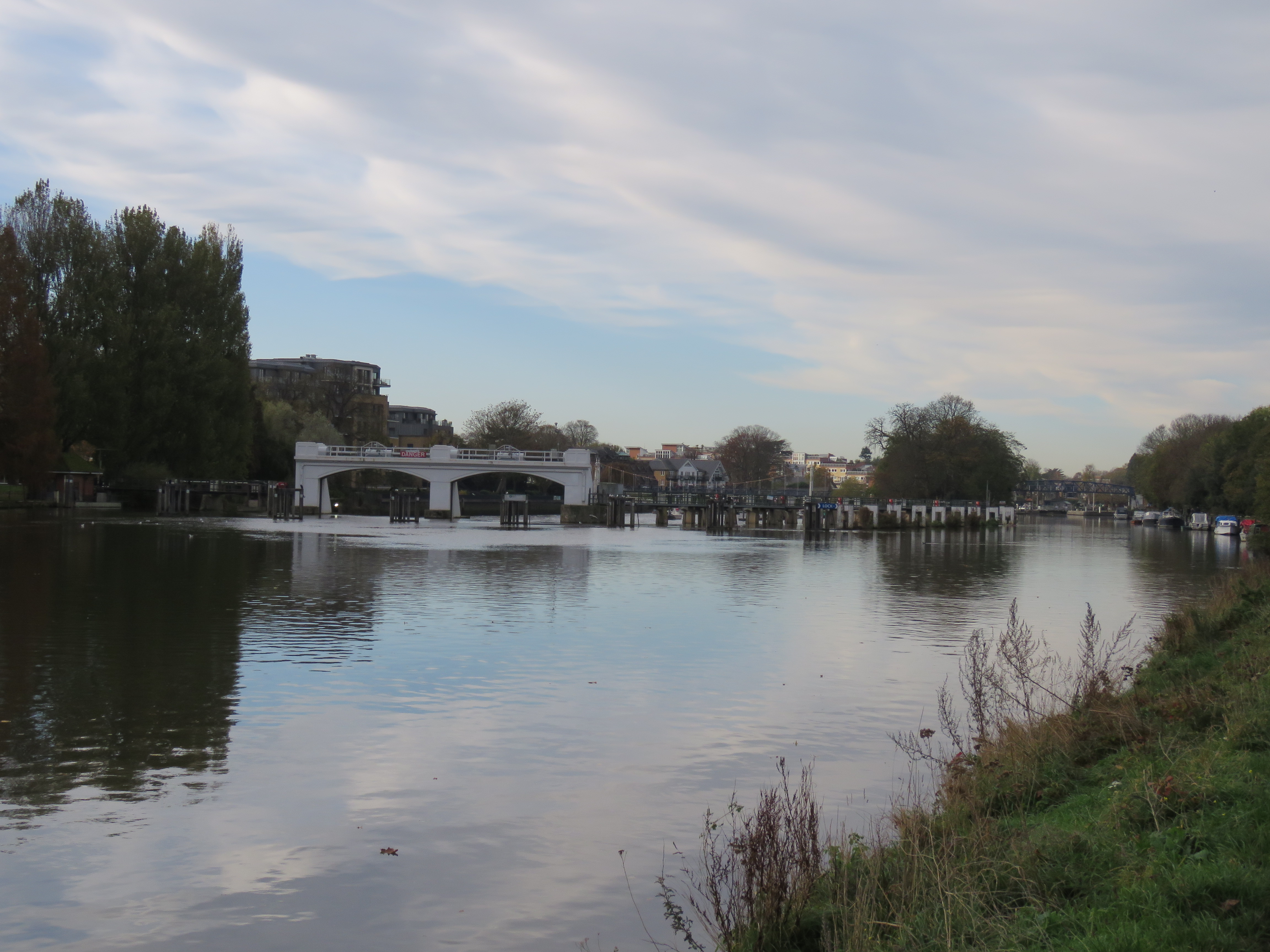Back to the river, and a little further along – best walked on the Surrey side – we reach Twickenham Bridge, and just beyond that, Richmond Lock. It’s the last lock on the river – or the first, depending on which way you look at it. It was officially opened in 1894 by the Duke and Duchess of York. After a major refurbishment in the 1990s, it was re-opened by the current Duke of York…