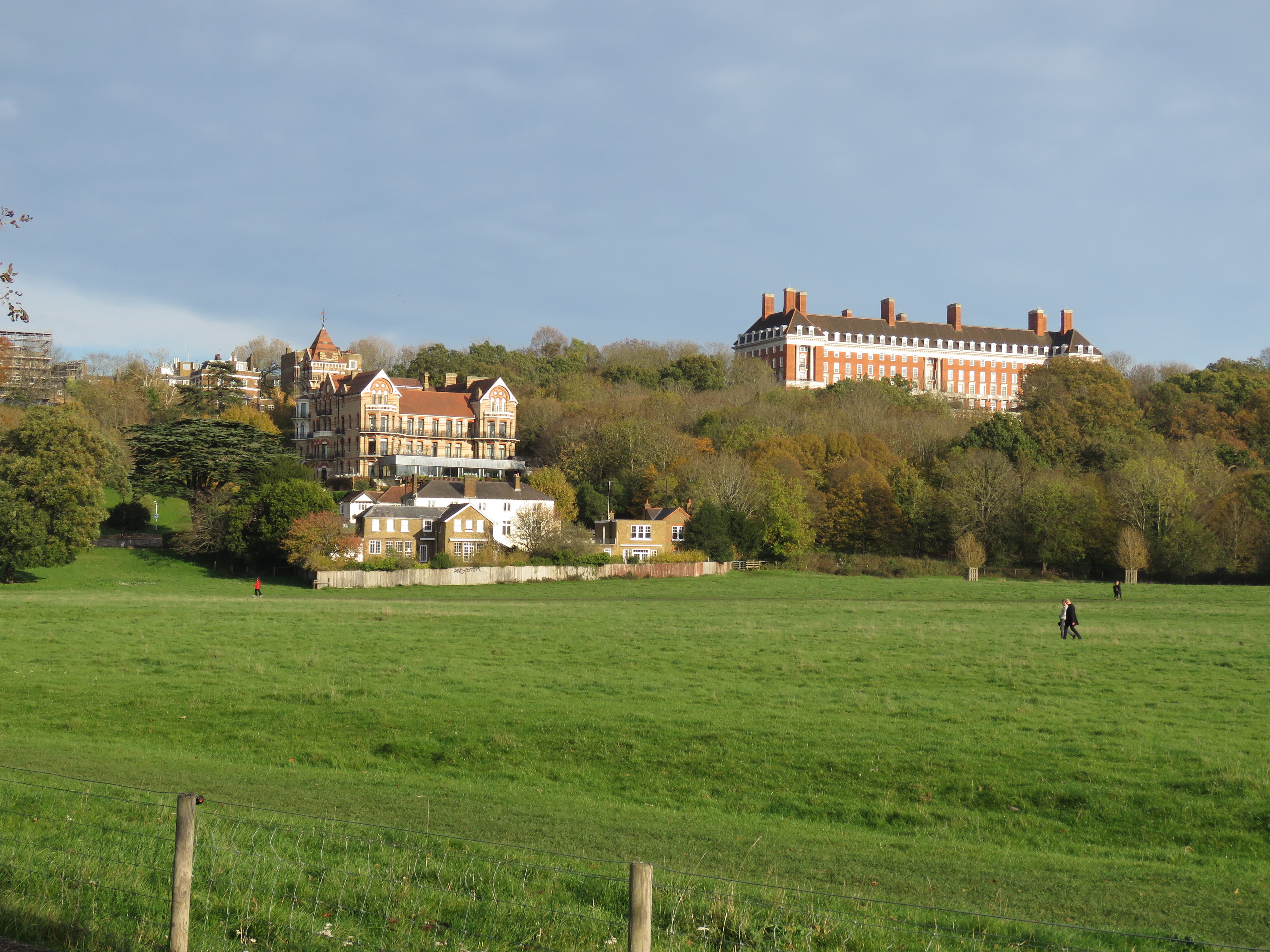 Switching to the Surrey side of the river, the approach into Richmond is truly a wondrous thing. You pass Ham House on your right and then behold the river widening and bending, lined with trees, which give way to the meadows which rise up to become Richmond Hill. The hill is lined with grand buildings, the most notable of which is the Royal Star and Garter Home for disabled military personnel. The home was built in the early 1920s – there was a hotel on the site before that – and remained in use until the early 2010s, when it was sold to developers, for conversion into apartments. The view of the river from the top of the hill is spectacular too. It was the first view to be protected by an Act of Parliament, in 1902. There is a viewing terrace, which holds a special place in my memories, as it is where, on a warm and sunny October day in 1990, Kath and I had some of our wedding photos taken. Our reception was held at the Richmond Hill Hotel, on the other side of the road.