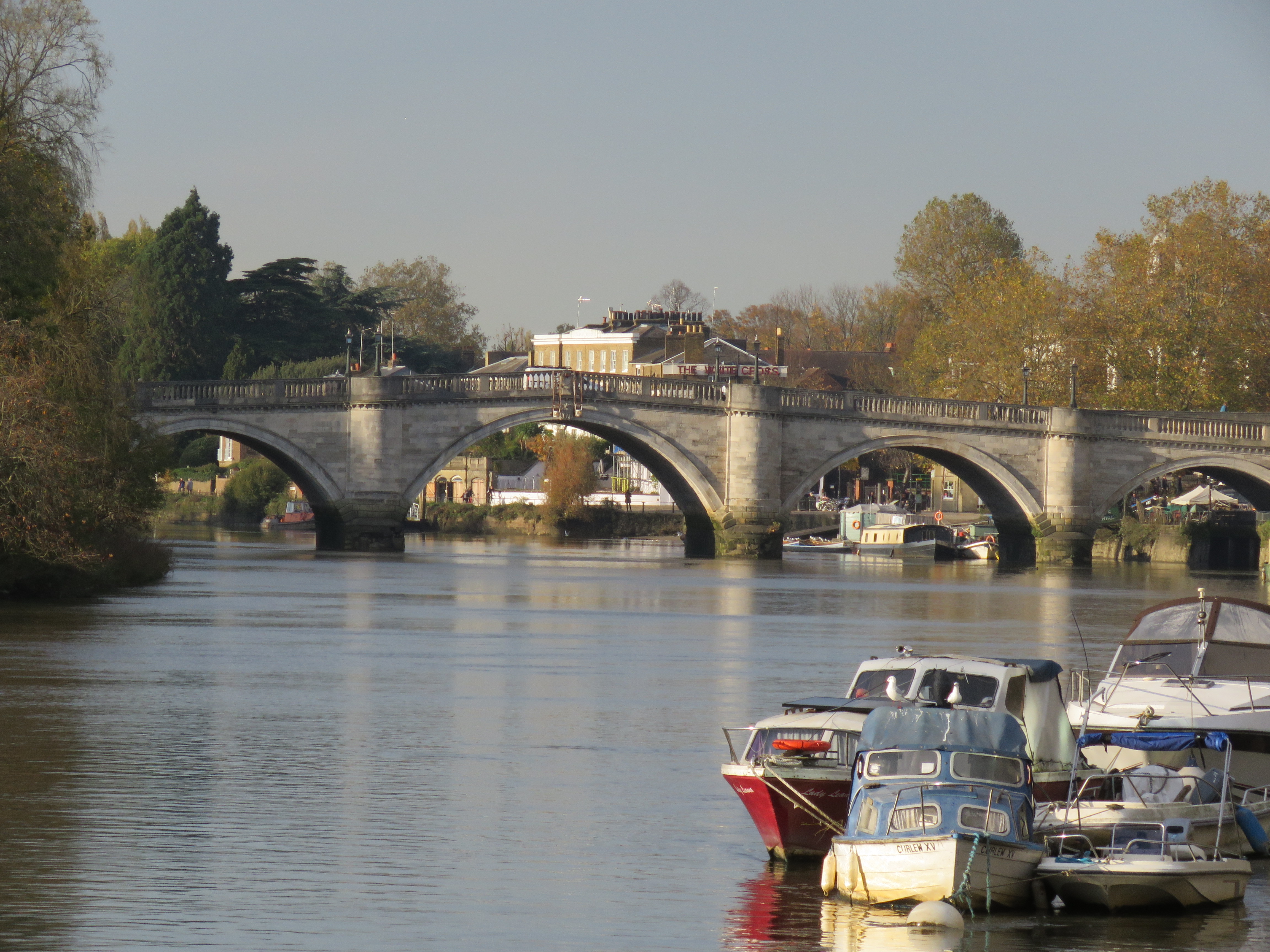 Richmond Bridge in November 2020. If you look closely, you can see the White Cross pub behind the bridge – see next paragraph.