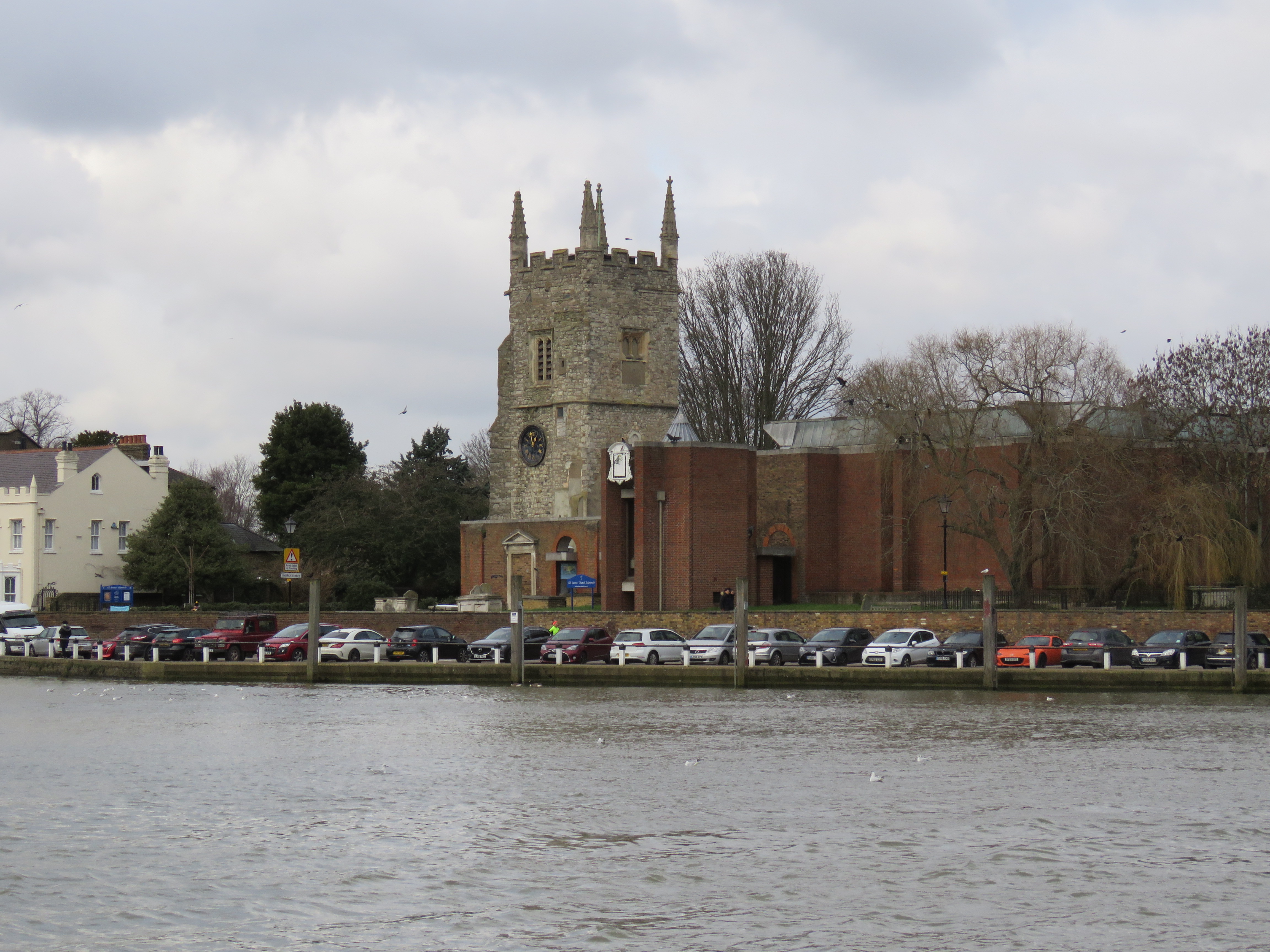 Kingston is a bit of a concrete jungle in its centre, with a punishing one way system, if I recall from the days when I had to drive there with my son Kieran for birthday parties at a leisure centre where they could run around and shoot lasers at each other. But the riverside is serene, and like all river settlements, it is rich in history.  Kingston is where they used to crown kings back in Saxon days, including Alfred the Great and the wonderfully named Ethelred the Unready.