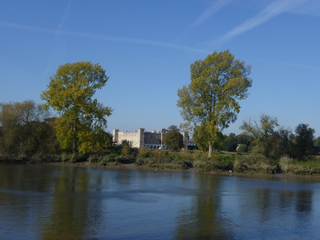 As the river bends eastward we reach the curiously-named Eel Pie Island, with Twickenham on the north bank and Ham on the south. There are houses and streets, but no cars. Until the footbridge was opened in 1956, the island was reached by ferry. In the 60s it had a musical reputation: the Eel Pie Island Hotel was a home for the blues as well as a venue for up-and-coming artists like the Rolling Stones, the Who, the Yardbirds, Rod Stewart and David Bowie. This part of London remains a centre for blues and jazz. The hotel closed in 1969, briefly reopened, and was burnt down in 1971. The island, also known as Twickenham Ait, was named after a dish served on the island from the 16th century. Henry VIII was apparently fond of the odd eel pie – no surprisse there. The hotel was opened in 1830, and the island was a popular picnic spot in Victorian times. It is mentioned in Dickens’ Nicholas Nickelby. Today, as Peter Ackroyd wrily notes, “The island is now the insular home for a somewhat eccentric community”. I’ve never got around to crossing the bridge onto the island, but from the towpath on the Ham side in the summer, you can see and hear the parties on the balconies and the riverside gardens. Does Pete Townsend still live there? Did he ever, or was it just that he owned the Eel Pie Studios on the Twickenham bank? Never mind – I like to imagine that in one of those large houses he’s jamming with his mates still.