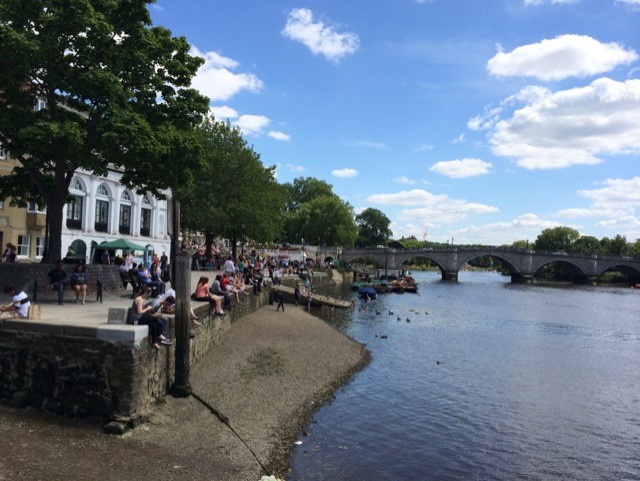 The riverside at Richmond is a great place to hang out, especially in the summer. But beware two things: it gets very crowded, and parts of it flood at high tide! The pathways down by the White Cross pub become impassable – unless you want to go barefoot, or are wearing wellies. I remember popping into the pub for a lager during a bike ride along the river a few years ago (just the one!). I locked my bike up against some railings along the river, got my pint and sat there in the sun. The river began to encroach. By the time I’d finished my drink, my bike was in six inches of water. Shoes and socks off to retrieve it!