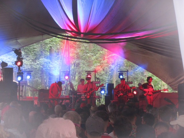 After breakfast, with Rick, one of our regulars, supplying the cups of tea to go with the Co-op egg and bacon sandwich (not bad) and assorted fruit (excellent), Jon and I set off to see the Goa Express at the Sunrise Arena, in its usual place In The Woods. (The band write their name in upper case.) I had them down as Britpop revivalists, but there was a bit more to them than that. They had a really fresh, jangly sound, very much the sort you associate with Liverpool through the ages, starting with you know who… A good reference point would be The La’s, that band who have influenced so many, even though they only made one, rather under-produced album themselves. Who doesn’t love the song There She Goes? The band are from Hebden Bridge, West Yorkshire, which is a bit of a creative hotspot at the moment. Check out their recent single Second Time. It’s a lovely melodic thing that raises the spirits. Indie guitar music is not dead!