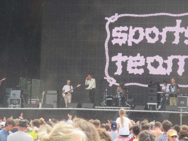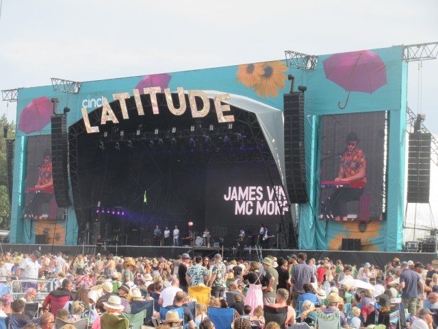 We sauntered up to the Obelisk to catch a bit of Supergrass. The place was packed, the busiest I’d seen so far. A lot of people buy day tickets for Saturday, and I think most of them set up camp in the Obelisk arena and stay there most of the day. Supergrass were perfect for the occasion and duly churned out their 90s hits, culminating in “Pumping on Your Stereo” and the evergreen “Alright”. An upbeat start to the day. They were followed by Sports Team, late replacements for Alfie Templeman. Very late replacements: they’d been playing Margate the night before and got a call at one in the morning to ask if they could do a set at Latitude at 2 o’clock that afternoon! And here they were, putting in a very lively shift, singer Alex Rice bouncing all over the stage. Sports Team divide opinion a bit, mainly because they went to Cambridge University and Alex is quick to voice his opinions on all sorts of topics. They were also nominated for the Mercury music prize for their debut album Deep Down Happy, which accentuated the sense of privilege. Their jerky indie is a poppier version of Squid and can be a bit annoying if you listen to more than a couple of songs. But credit to them, I thought they put on an energetic and entertaining show today.