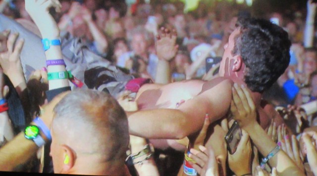 We stayed in the BBC tent for the next band – something of a contrast! Those rowdy south Londoners, Shame. They put on a brilliant live show as ever, really engaging the crowd. It was a shame – no pun intended – that they clashed with Bombay Bicycle on the Obelisk for the first half hour, as the tent was only half full until reinforcements arrived after BBB finished. Not that it made a jot of difference to Shame’s performance, which was as full-on as ever. Singer Charlie Steen didn’t take long to pull off his shirt and launch himself into the crowd. And it was great to hear One Rizla near the end – that one has a real tune! I loved it – though possibly not as much as Jon, who disappeared to the front when Louis, Gab and Mark arrived from BBB. Steady on, old chap, don’t want to do yourself an injury!