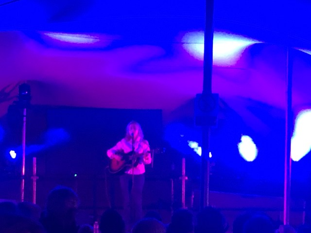 We went on later to another new venue, located in the Faraway Forest, a part of the site to which we rarely venture. The home of cabaret and hippies and Zen… and small dance sites belting out the techno, rather incongruously. It was called The Outpost rather appropriately, and was a low rise tent, with room for a couple of hundred people. We were there to see Lizzie Reid, a singer-songwriter from Glasgow. I’d heard a few of her songs on 6 Music and checked out her recent EP Cubicle. They are delicate, somewhat downbeat songs and Lizzie struggled to project them on the night. She wasn’t helped by the booming techno beats in the background. I’d happily see her again though, in a more propitious setting.