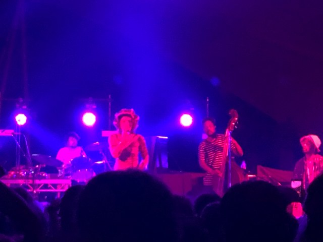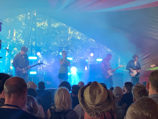 After Sports Team, there was no-one we had in mind to see, so when in doubt, see what’s on at the Sunrise. It rarely lets you down. Next up was an Irish singer, Orla Gartland. The blurb in the programme referred to her “existential pop”. Wikipedia said she’d made her name singing cover versions on YouTube. It seemed worth a go. And by the time she started the place was heaving. She was given a rapturous reception by the mainly youthful audience, most of whom seemed to know all the words to her songs. The Sunrise comes up with surprises like this from time to time, and it’s a reminder that there’s a world of music out there that you just know nothing about. Her songs were pretty standard rock/pop with occasional slashes of angry guitar amid the Taylor Swift-style choruses. (Example: I did it to myself.) But the atmosphere was great and we stayed for the whole show. That meant we missed most of Lava la Rue in the BBC tent. She is part of a west London music collective playing that melange of R&B, hip hop, dance and jazz which is pretty popular right now. Takes me back to the 90s – the Rebirth of Cool and acid jazz vibe – and I love it still. Will have to try to catch her somewhere else.