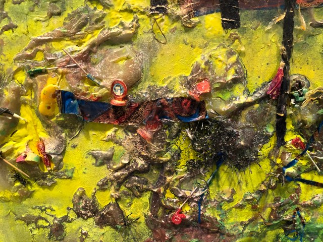 And there are all sorts of objects embedded in this painting. A close look suggests lollipops. Why? And how did he know when to stop adding lollipops? Why not just one more? Maybe he ran out, maybe he got bored. Maybe he thought, I have said enough in this painting.