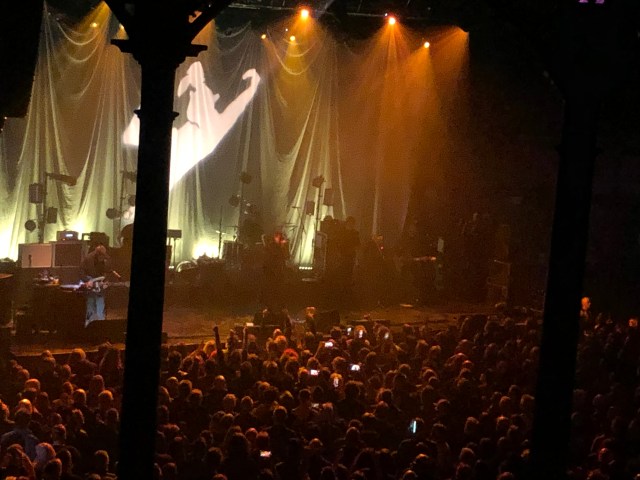 As for the concert, it was ok. Until near the end it felt bereft of familiar songs, though Jon said afterwards that he did know most of them. I’ve probably got a lot of them sitting in my vinyl collection, long-forgotten. I found it all a bit gloomy. The lighting was deliberately low, singer Ian McCulloch prowled around in a dark overcoat, when he wasn’t winding up the London crowd, and most of the songs were pretty dirge-like. All very well played though – and well-received by the capacity crowd. It brightened up for me briefly when they played Seven Seas and then The Cutter at the end of the set. Killing Moon was a suitable anthem with which to end the whole show. They did know how to write a good anthem in their heyday, I have to say. No Back of Love, which was a shame, especially when the vast majority of people there would have come to celebrate the Bunnymen’s moments of glory in the 80s. A cover of Lou Reed’s Walk on the Wild Side was a low, especially when McCulloch changed wild side to Merseyside.