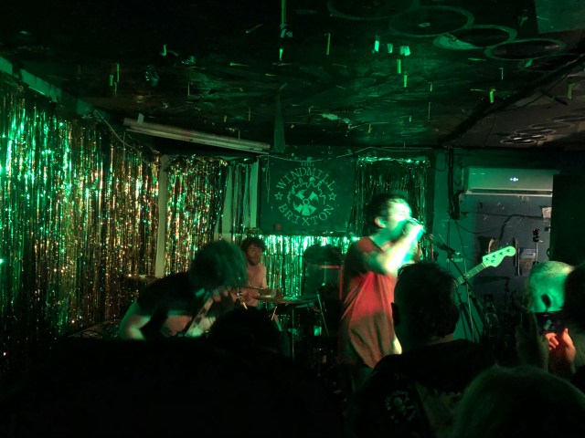 I went with Jon G to Enola Gay on the 6th. I’d not been to the Windmill before, which is surprising, given that it is the place that so many indie bands have made a name in recent years, including Fat White Family, Goat Girl and Shame. It’s a pub, but one devoted to music. There’s no separate room for the gigs. I liked it – a proper music venue. We got there for the support act, Yinyang (aka Lauren Hannan) from Belfast, like Enola Gay. She sings about the tribulations of life over bass-heavy hip hop beats, which on Spotify reminded me occasionally of some of Billie Eilish’s early music. It was her first ever live show apparently. She did well, but it’s just her and her laptop – I’d suggest she teams up with someone – Sleaford Mods style? – so that there’s a bit more to focus on.