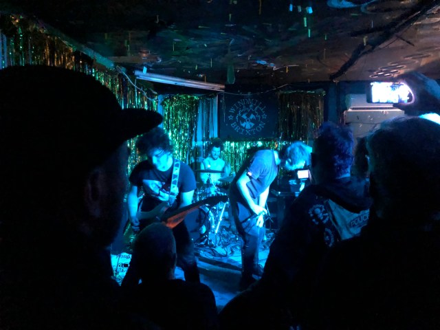 And then Enola Gay. Wow! Theirs is a brutal, relentless sound. On 6 Music I was particularly struck by the song Through Men’s Eyes, but all their songs combine hard-hitting lyrics – if you can discern them – with piledriving riffs and rhythms that are either punk or hip hop, and sometimes both. Live it was awesome, especially in such a small venue. Half way through I moved to the side at the front to get a better view of the guitarist and drummer, and was grateful for the ear plug I brought along to protect my good ear! I don’t use it that often, but it was essential tonight.