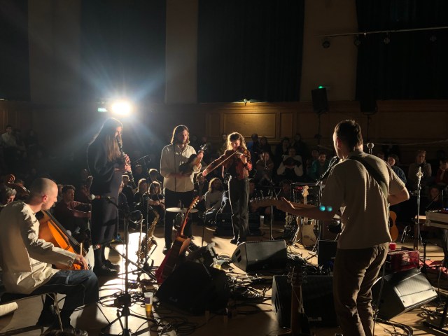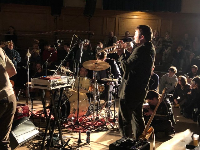 How to describe Caroline? The fact that they were playing at Cecil Sharp House, the home of the English Folk Dance and Song Society, tells you something – the music is rooted somewhere in the traditions of folk music. But folk music from everywhere, not just England. Throw in Black Country New Road, some monkish chanting, avant-garde jazz and some scratchy Captain Beefheart guitars and you might be able to get an idea of what they sound like. Best thing to do is just go and see them. They really are a fascinating, engrossing band. There’s a little singing, notably on the medieval-sounding IWR, which is rather lovely. There are trumpets and saxophones, cellos and violins, as well as guitars, acoustic and electric. Sometimes the sounds flow; other times they are eked out of the instruments, a good example of this being the tune Skydiving onto the Library Roof. Your guess is as good as mine what that’s all about, but the music is strangely compelling.