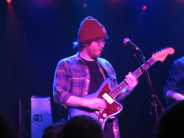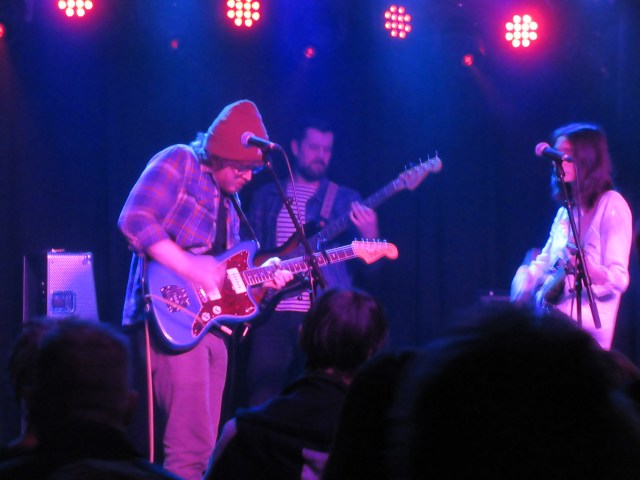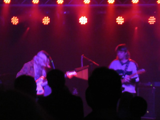 Which brings us onto King Hannah. The set was based around the new album, of course, but the sound was familiar from Green Man, though more powerful and direct in the smaller venue. Hannah for a while adopted the insouciant/nervous pose, with no introductions: but she succumbed after a few songs, to express her gratitude and amazement at the number of people there. They are quite a humble band – their Instagram account suggests that they are genuinely taken aback by the numbers of people coming to see them. And it’s well deserved: the show was excellent, with some astonishing guitar from Guy adorning every song. Visually the two of them are chalk and cheese: Hannah elegant and seemingly aloof, New York indie style; Guy, in his plaid shirt and beanie, straight out of some mid-west Americana band. But they complement each other perfectly, just as the brooding melodies blend so well with the searing riffs and solos.