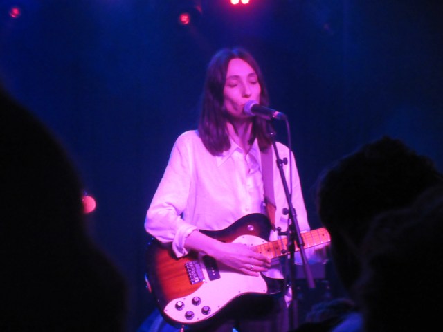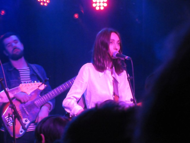 The band played the Lexington on Pentonville Road in the autumn, but I couldn’t make that; so I was pleased to see that they had a tour to promote their first album, I’m Not Sorry, I Was Just Being Me, this spring. I wasn’t able to persuade any of my friends of the band’s merits, so made my way up to Hackney on the Overground last Wednesday to see them myself. I like Oslo: there’s an excellent bar/restaurant on the ground floor and the music room upstairs is a nice size. I’d say you could get 300 plus in there. Just right for a band on its way up. I got there in time to see the support act, Hussy, named after the singer (real name Sophie Nicole Ellison). She played guitar and was accompanied by another guitarist with an impressive mullet! I wasn’t familiar with their music, but enjoyed it – some of the guitar work took them into similar territory to the main act.
