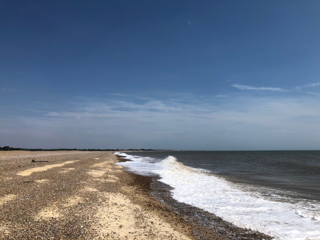 Jon and I are slowly turning the Latitude experience into a week’s excursion. Last year we stayed overnight on Wednesday in a Suffolk village called Campsea Ashe, so we’d only have a short drive to Henham Park on Thursday morning. That worked so well, we decided to go up on Tuesday this year and have a day’s walking on the Wednesday. The Suffolk coast, with its long shingle beaches and nearby marshlands, is a walker’s delight. We kept it fairly simple on Wednesday: seven miles or so, first along the beach from Walberswick to Dunwich – where the cliffs are slowly falling into the sea – and back through woodland and then the marshes. Breathtakingly beautiful under those big skies.