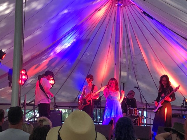 I got on my feet for the next performance, from New York-based guitar trio Wilsen. I’d not come across them before, but the programme notes suggested that they might be that rare thing at Latitude – a proper rock band. They were, but a dreamy, shoegaze one. Which is fine by me! I really liked their sound, which had some resemblance to another New York band who I like a lot called Lightning Bug. Check out their song The Right Thing is Hard to Do – it was my most-streamed track on Spotify last year.