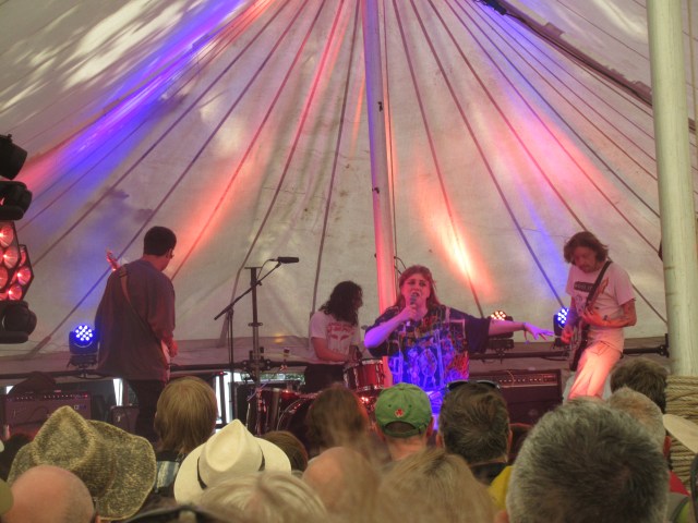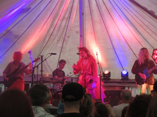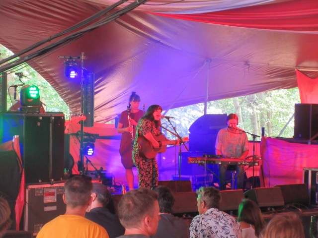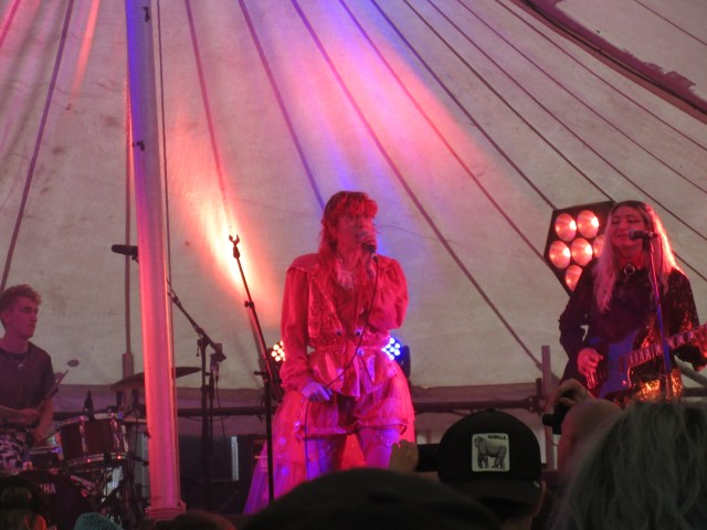A hot and windy day, with temperatures reaching 29C in the afternoon. We took it easy in the morning, though Jon made it to the Sunrise for a singer called Tina Boonstra at 11.45. I lingered over breakfast with Louis and Gab until it was time to head for the BBC Sounds Stage for just what you need to kick start the day – the guitar and drum thrash of JOHN. So-called because both band members are called John. Jon and I – that makes four of us – saw JOHN at Green Man last year, again at the start of the day. It’s straightforward stuff: pounding drums, relentless riffing, and shouty vocals from drummer John. Not a lot of variation, but a great rush of energy. I love ‘em!